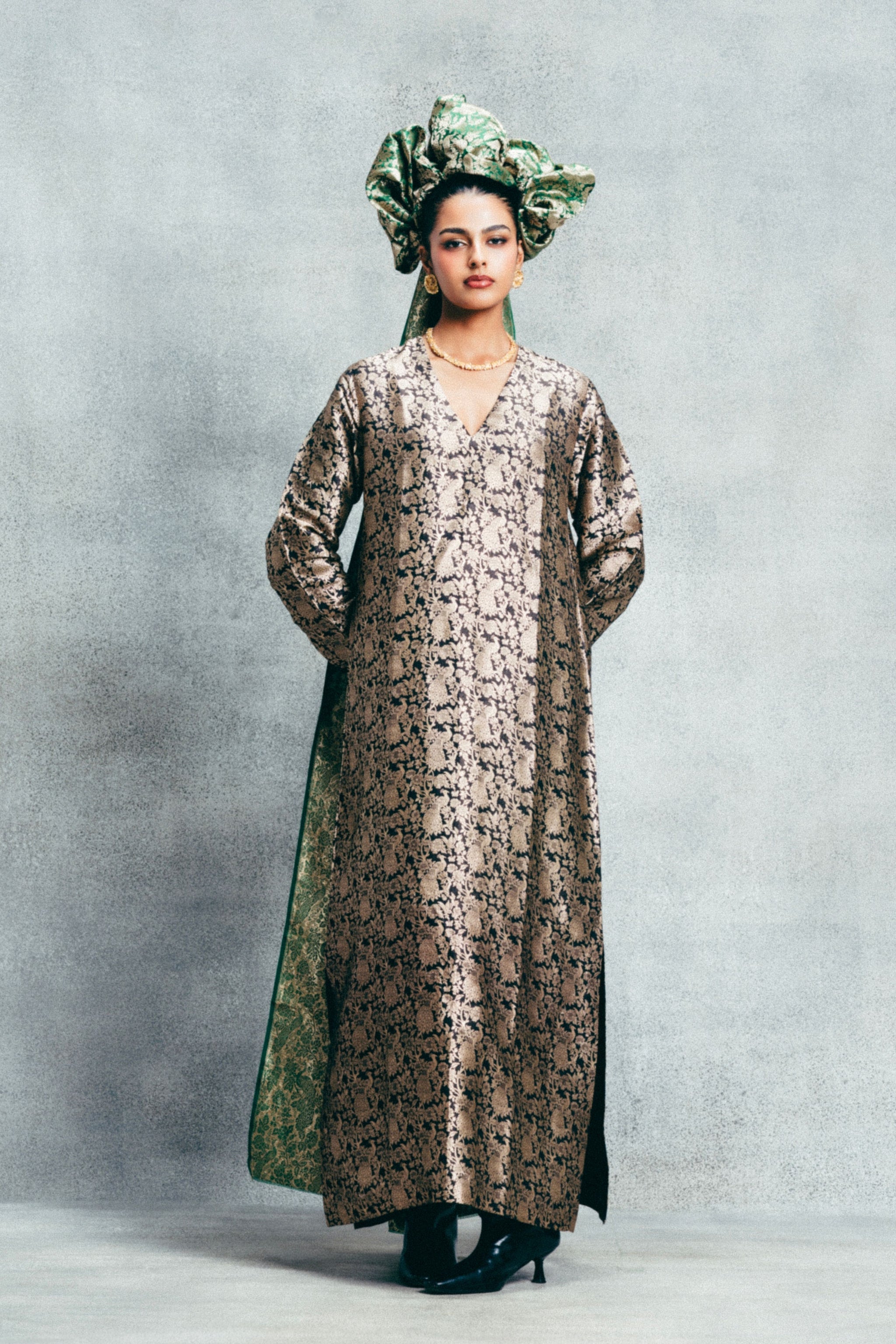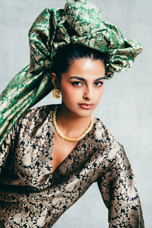 Handwoven Black & Gold Banarasi Kaftan
