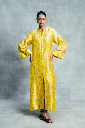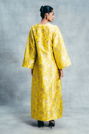 Handwoven Canary Yellow Banarasi Kaftan