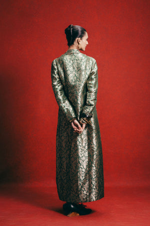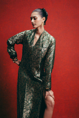 Handwoven Olive Green Banarasi Kaftan
