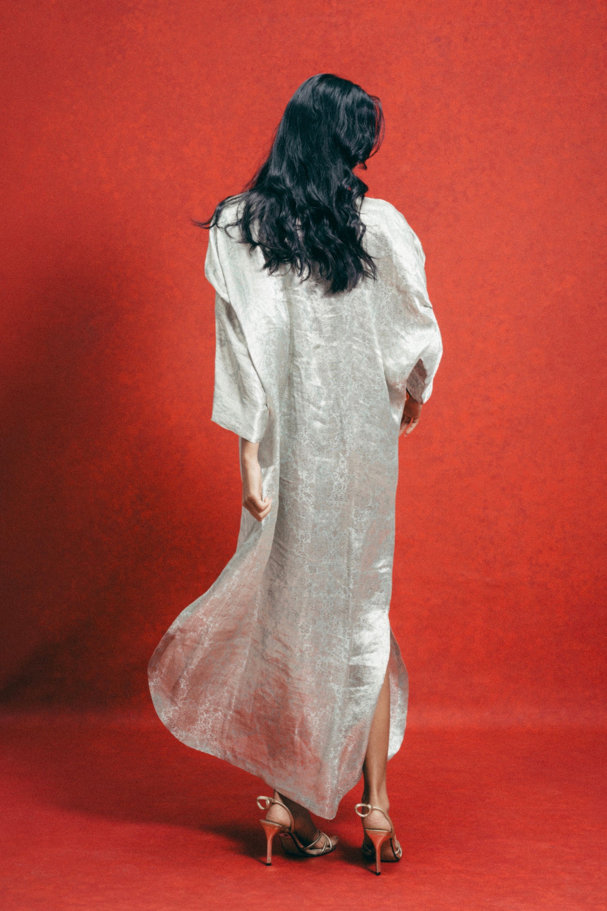 • Crafted using the finest silks, Ekaya introduces one of its boldest new expressions yet, the Banarasi kaftan. This sea-green kaftan is handwoven in Banarasi Emboss technqiue and crafted in tissue-silk. Cut in a fluid, global silhouette, it features a V-neckline and side slits that feels elevated. Designed for styling, this kaftan adapts to how you wear it, from day to evening, across settings and moods. It's made for the global woman with an Indian soul. Please note: The kaftan lengths cannot be customised longer than 56 inches.