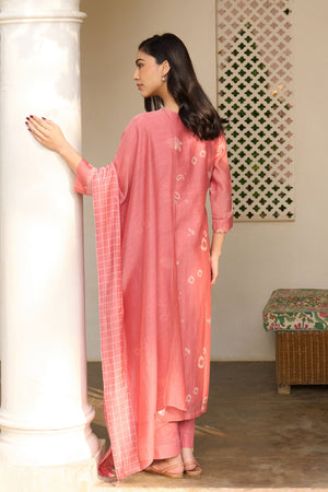 • The hibiscus floral kurta set features softly printed blooms scattered across the kurta, creating a look that feels both fresh and timeless. The ensemble is paired with a checkered dupatta, finished with our signature tassels for a touch of effortless charm. Thoughtfully detailed and balanced, this set brings together comfort and elegance in an easy, everyday silhouette.