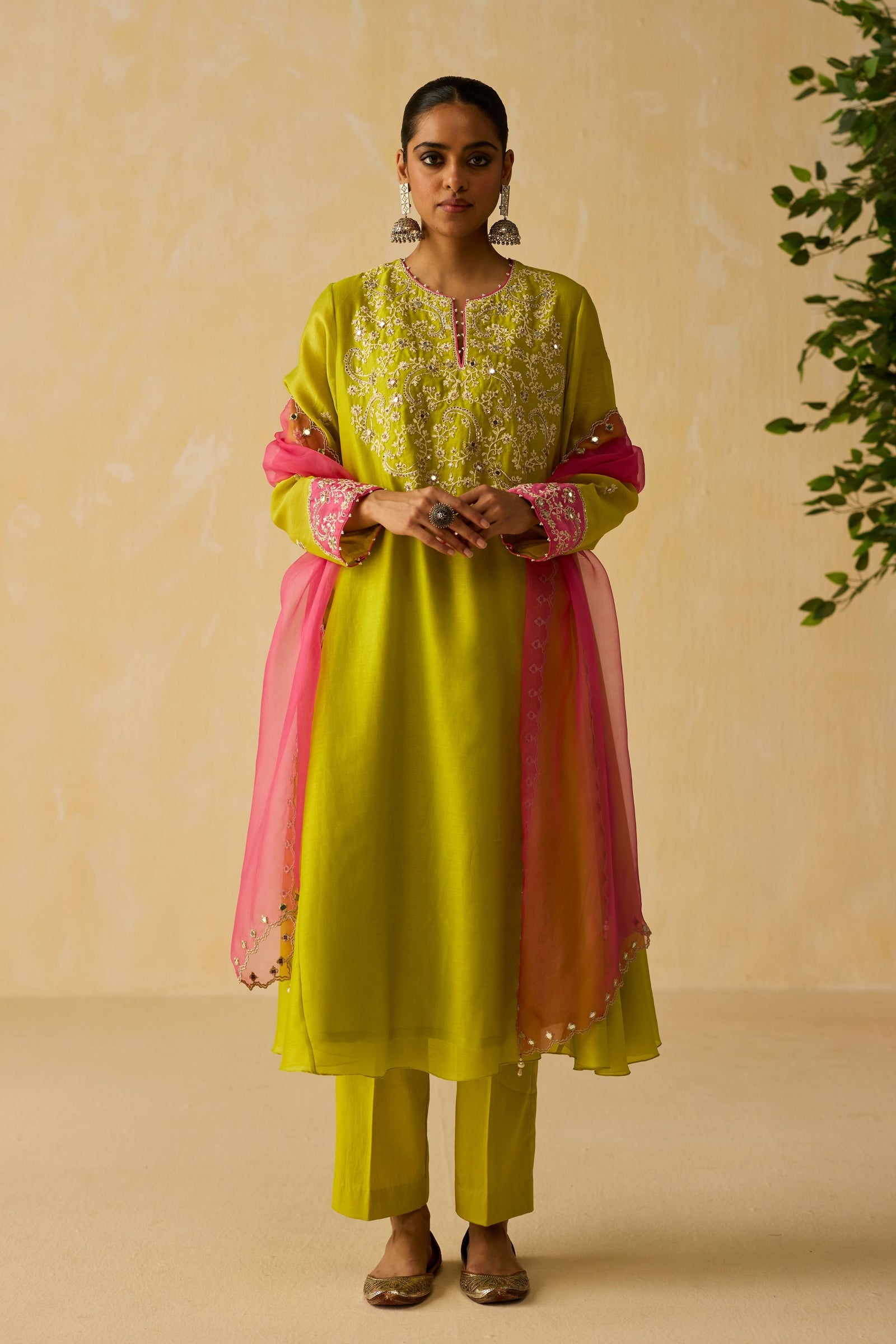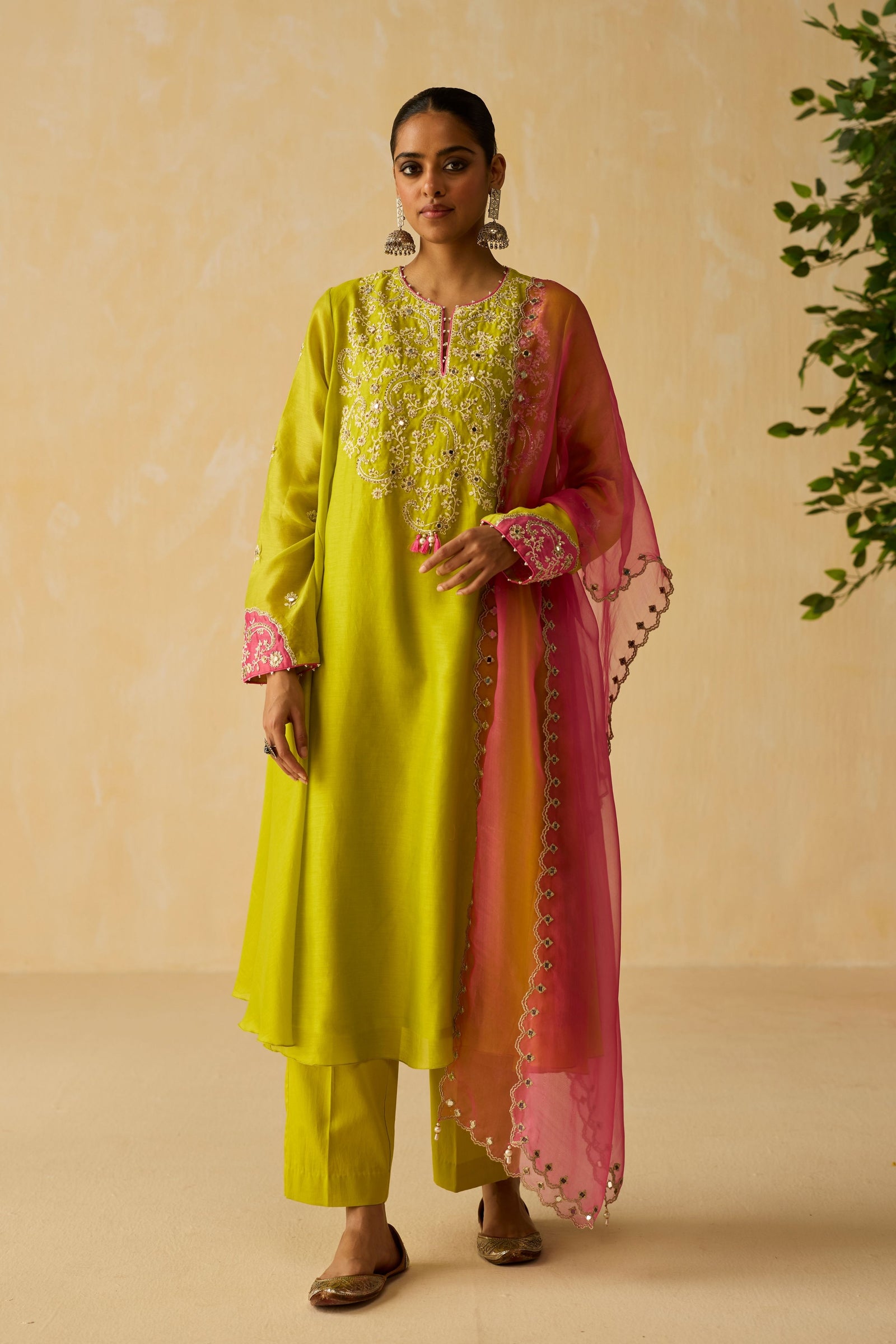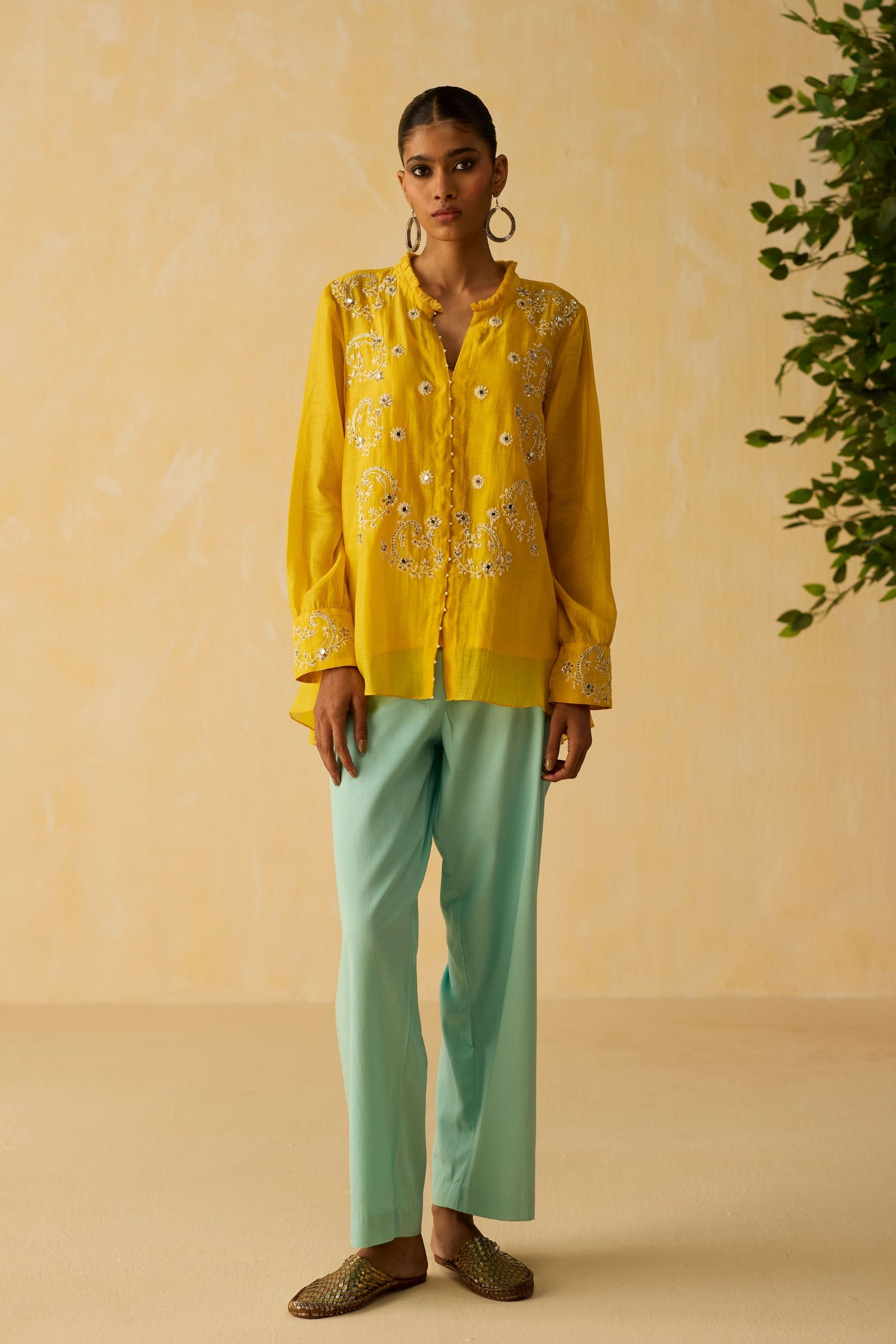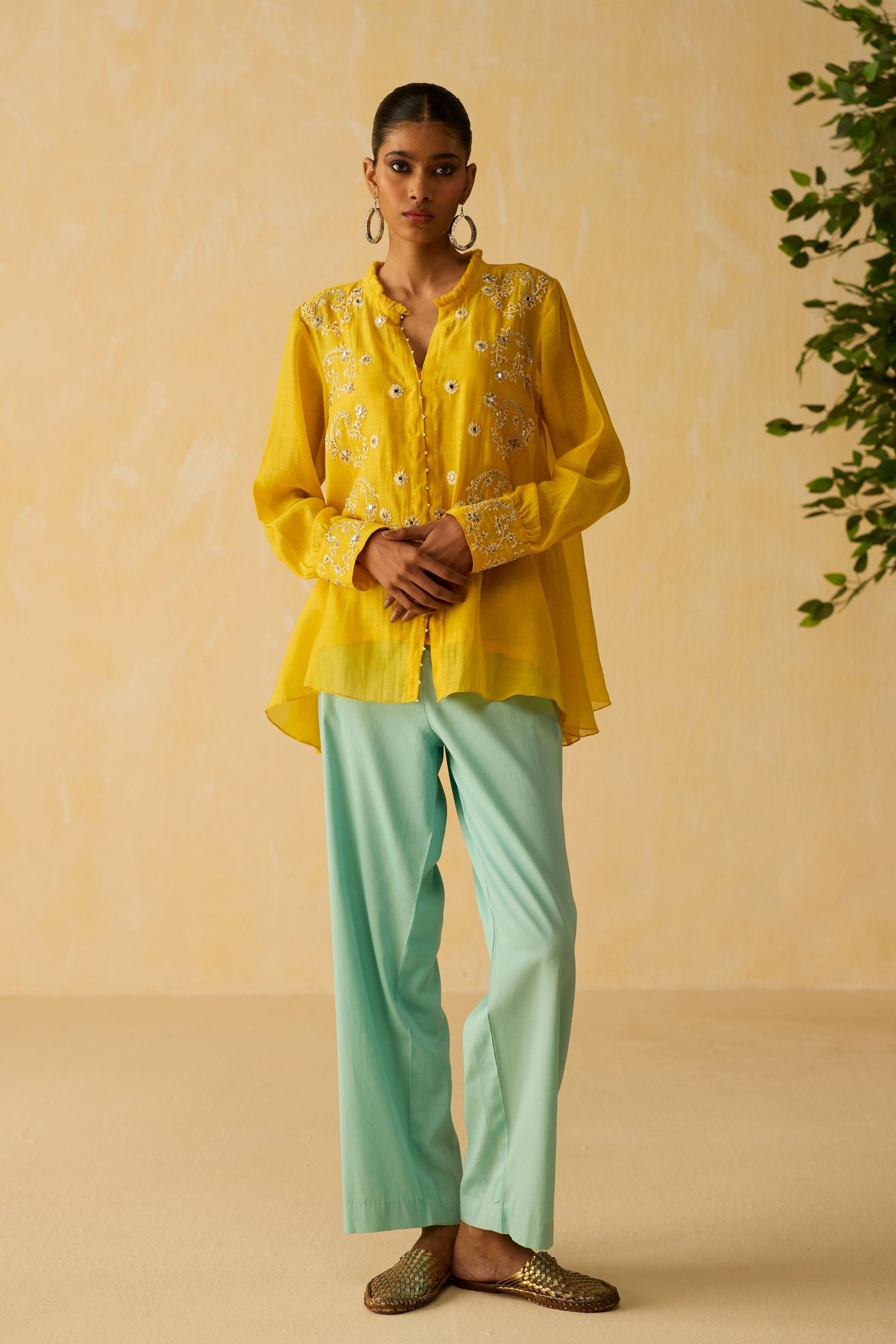 Care: Dry Clean Only. As garments are handmade and handwoven, natural variations in colours and weaves are a characteristic of the textile, and may be found in the finished garments as well.