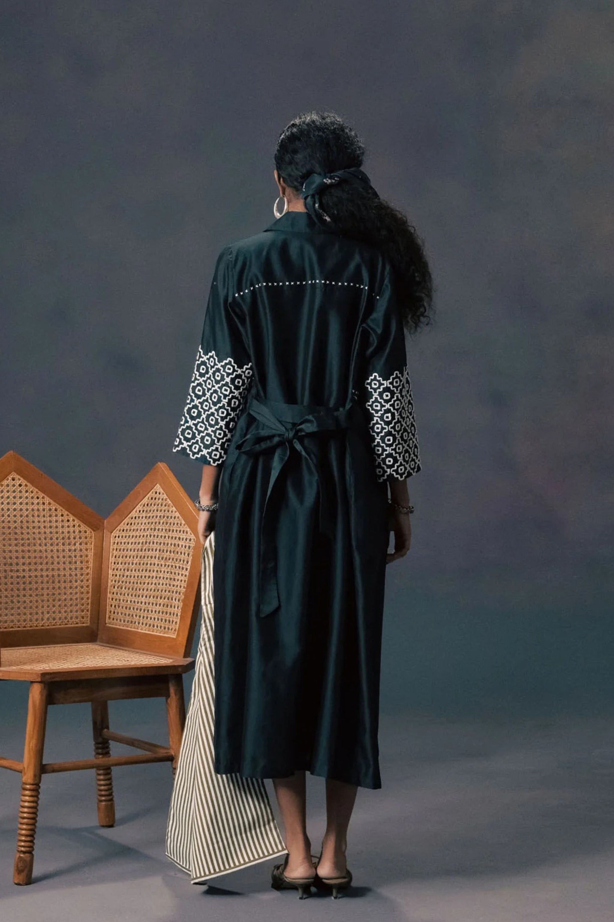 Care: Dry Clean Only. As garments are handmade and handwoven, natural variations in colours and weaves are a characteristic of the textile, and may be found in the finished garments as well.