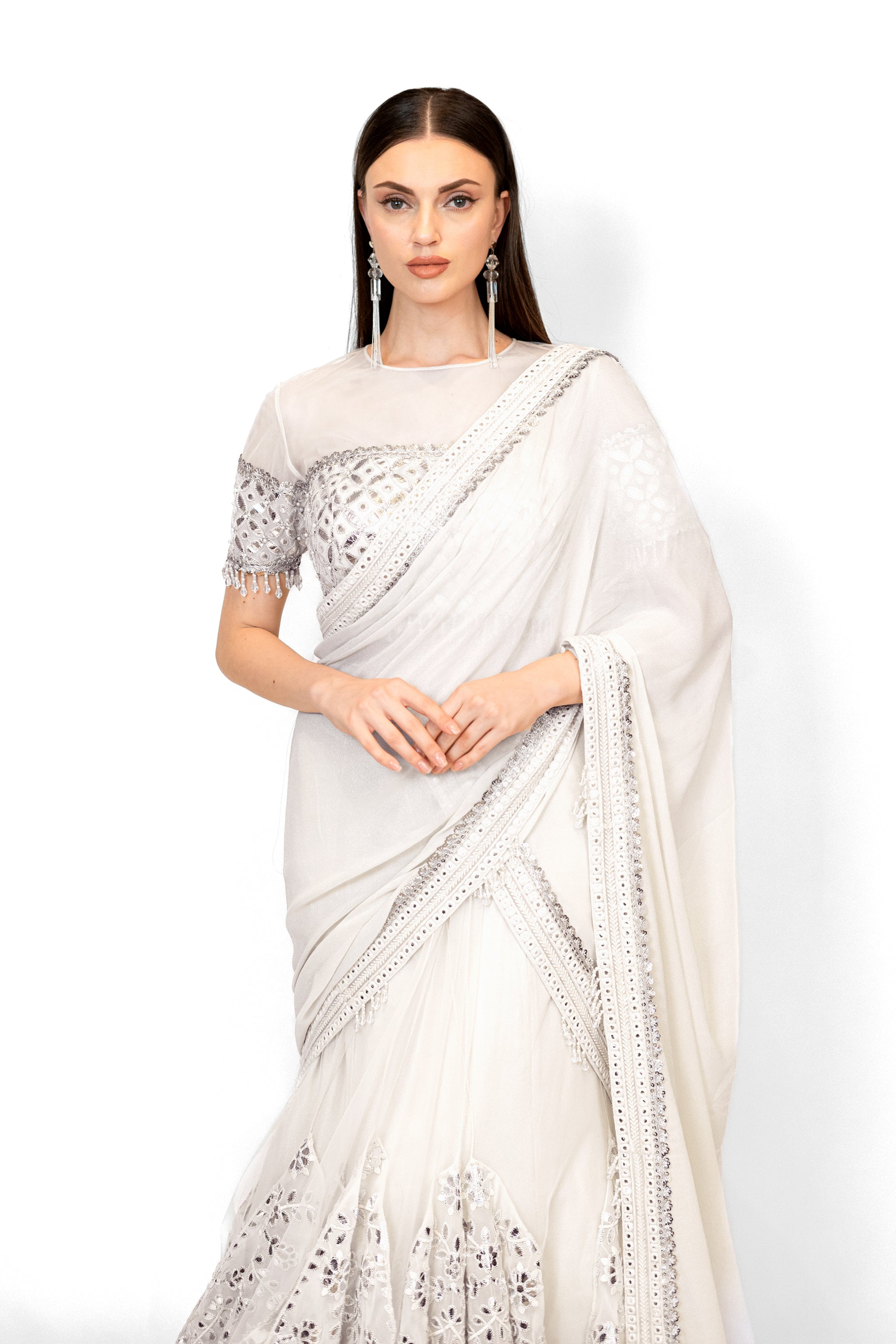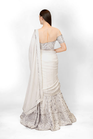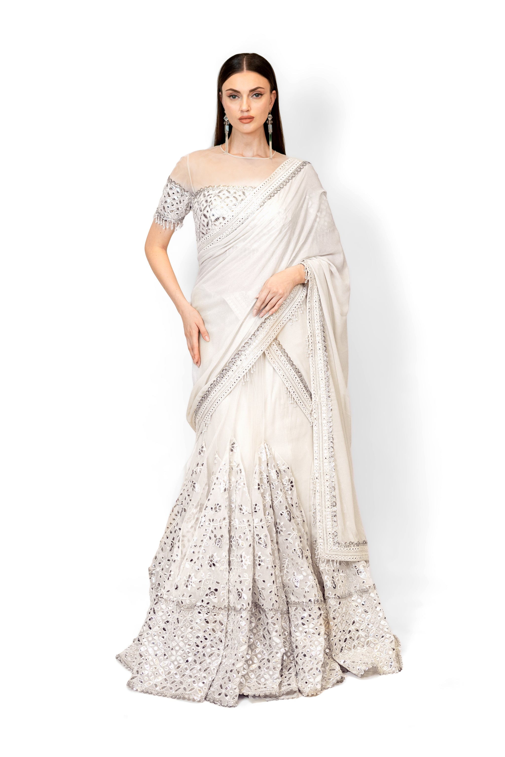 • Ivory Gota 9 Godes Lehnga Saree Set
