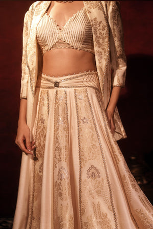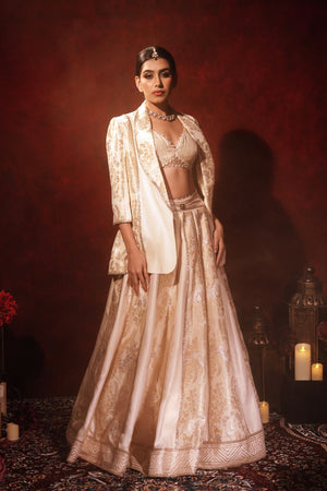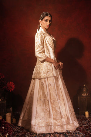 Ivory Brocade Blazer Lehenga Set