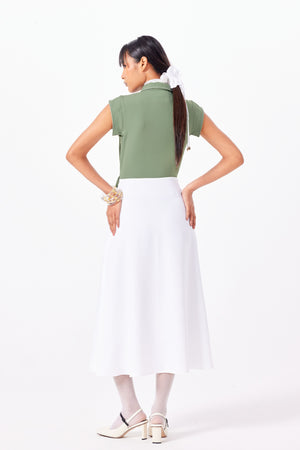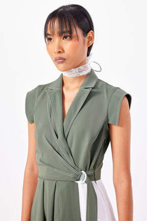 • The jade dress showcases modern tailoring with a graceful drape created by luxurious crepe fabrication. Its clean silhouette enhances natural movement while maintaining structure. Perfect for elevated daywear or evening occasions.