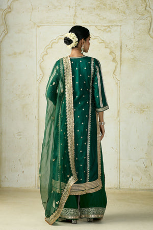 • Fabric: Kurta- Tussar, Palazzo- Blended Satin, Dupatta- Organza