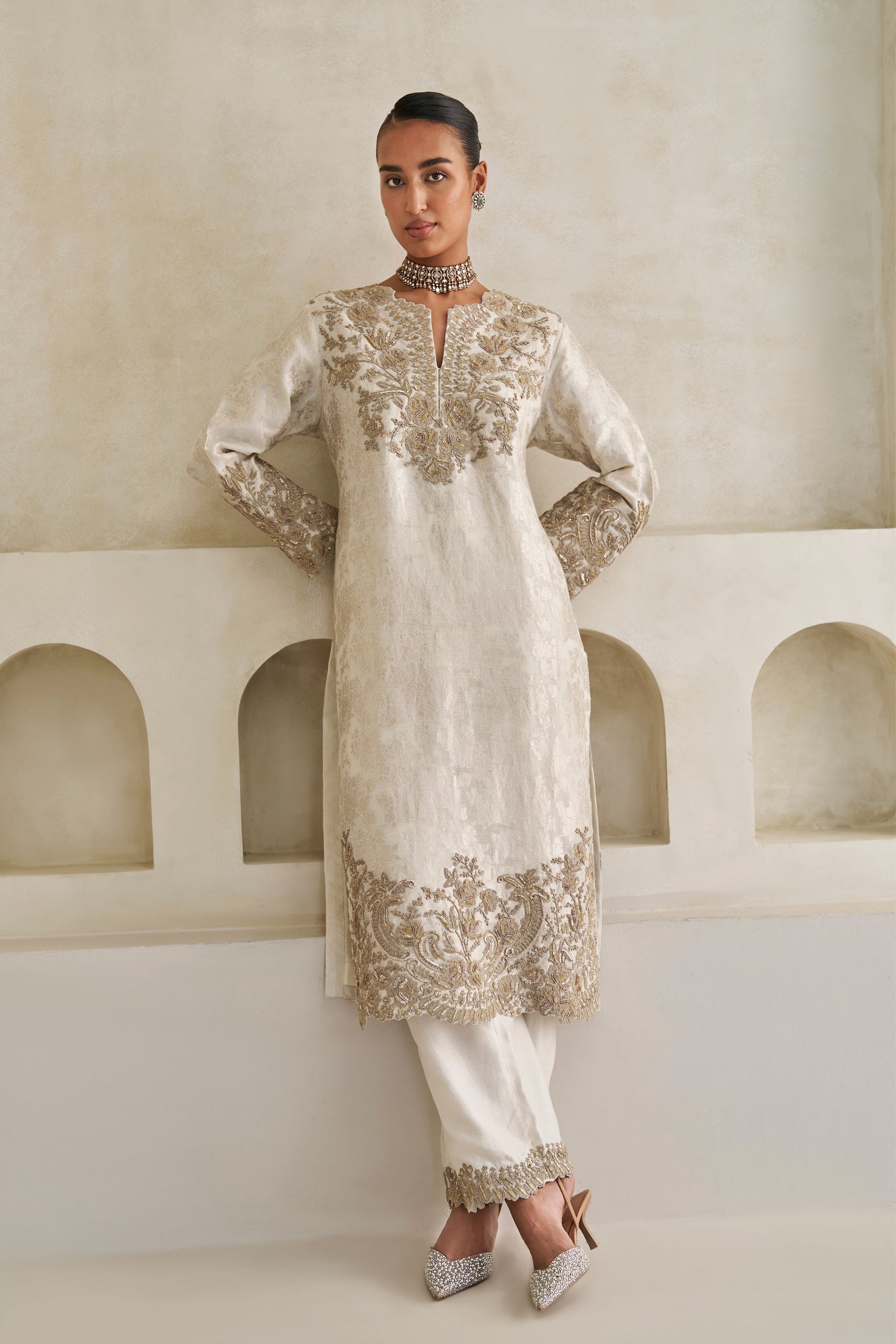 Care: Dry Clean Only. As garments are handmade and handwoven, natural variations in colours and weaves are a characteristic of the textile, and may be found in the finished garments as well.