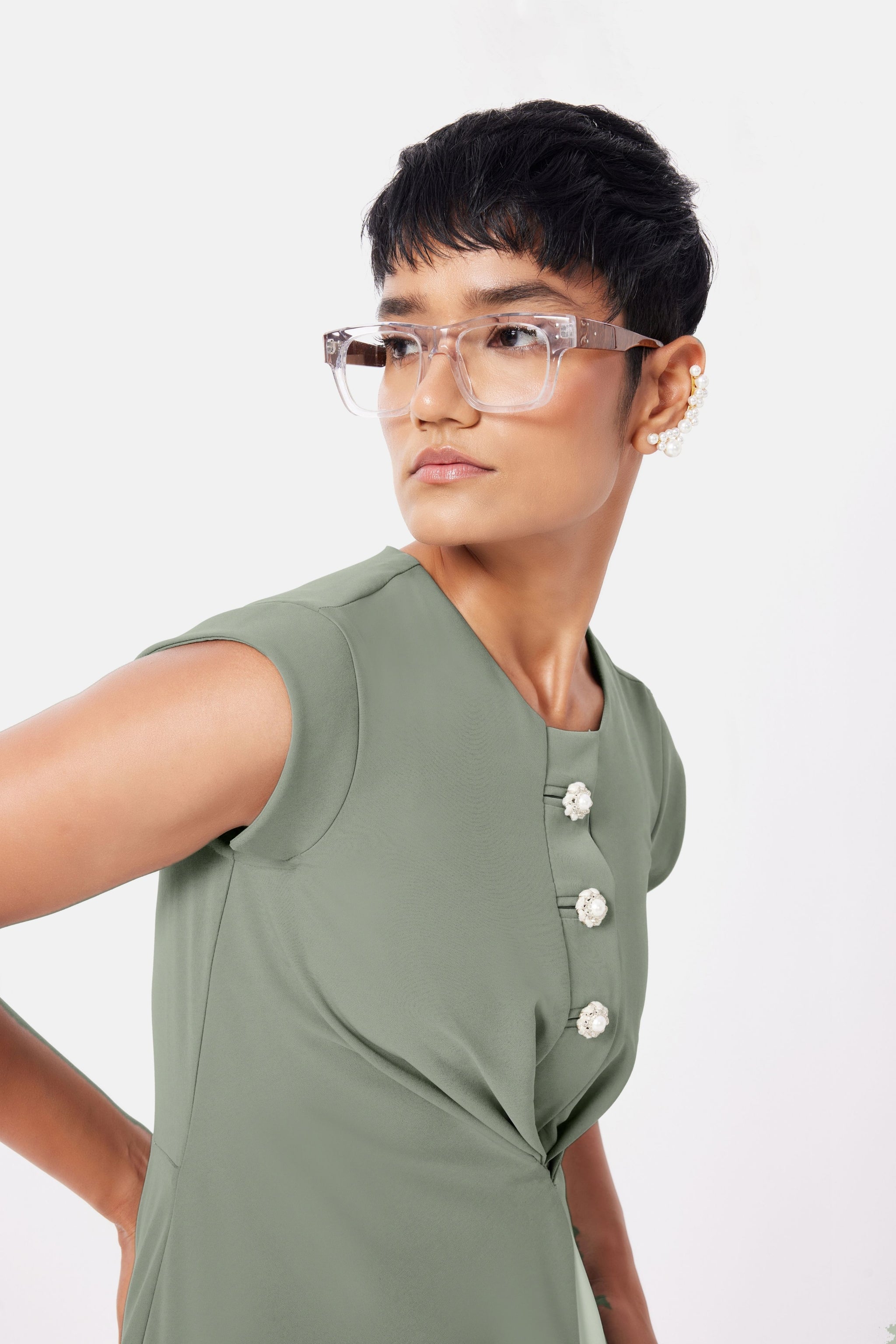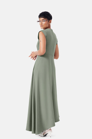 • The magnolia dress embodies refined femininity with its elegant drape and tailored construction. Designed to flatter, it creates a sophisticated silhouette suited to both occasionwear and elevated day dressing.