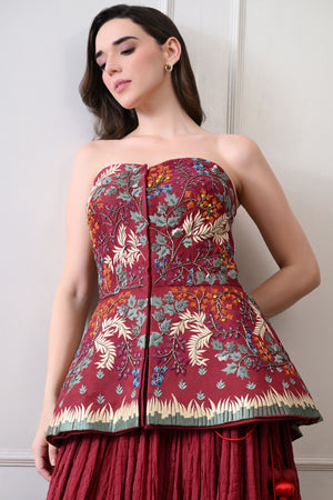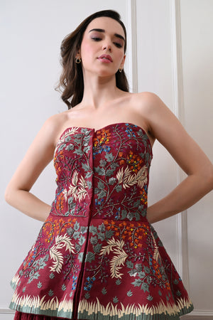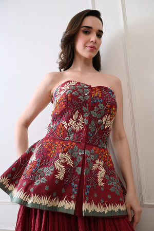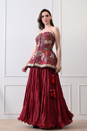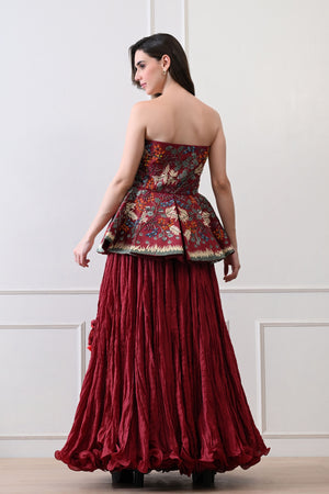 Maroon Strapless Peplum Skirt Set