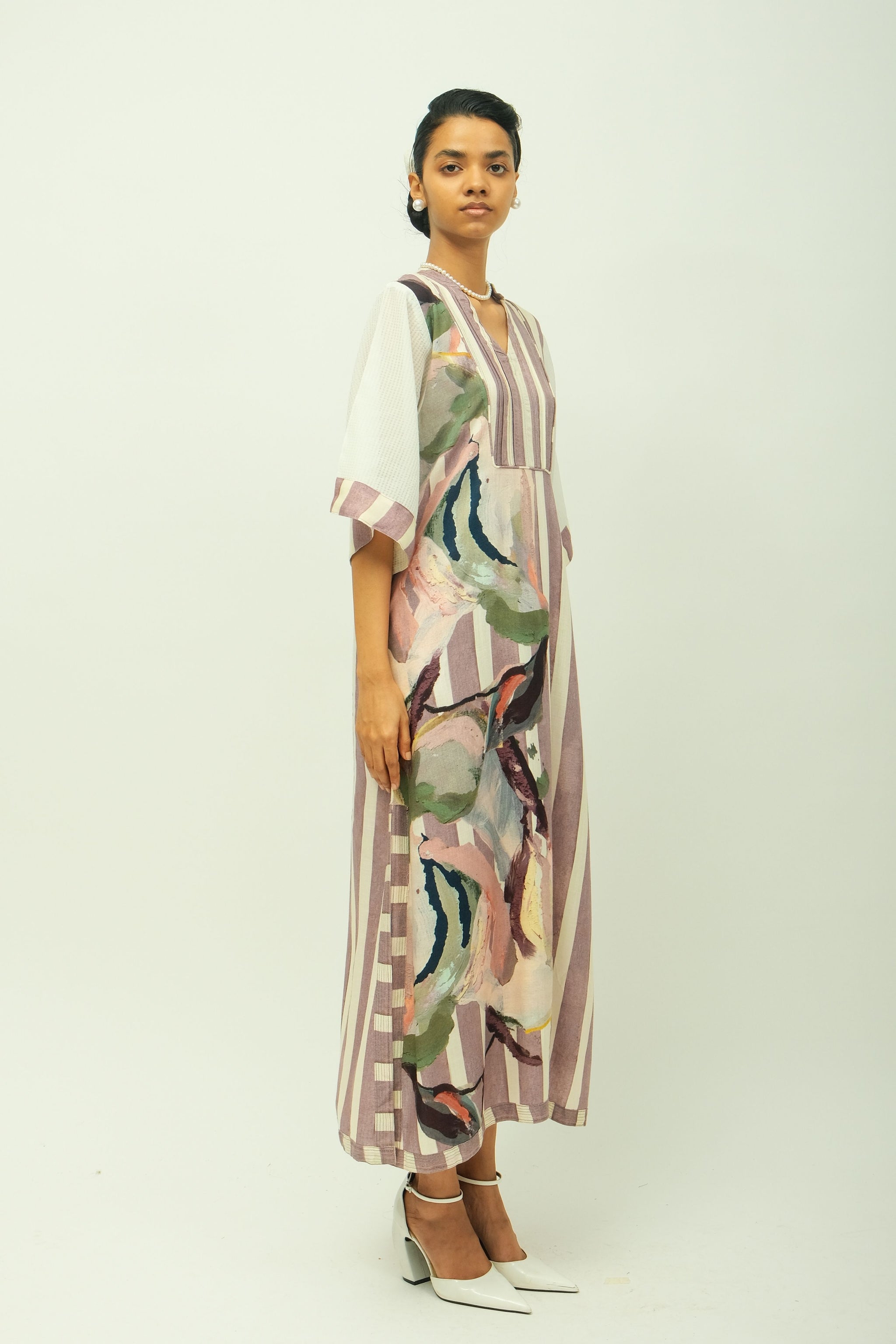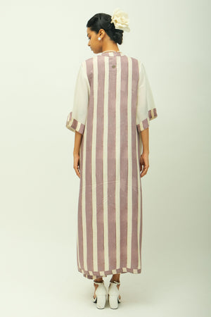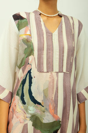 • Anti fit, shirt collar, square yoke, top stitch detailing, voluminous full sleeves, gathers on sleeves and bust line, side slit, relaxed fit.Variations in color, texture, and weave are inherent due to the handmade nature of the garment- single piece. Garment length - 48"