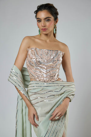 Mint Ombre Draped Saree Set