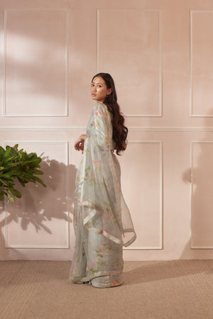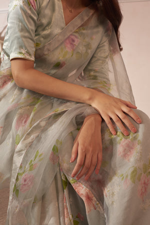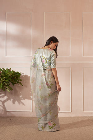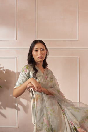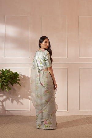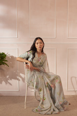 • Fabric: Handwoven Mulberry Silk and half Silk Organza Sari with same print Silk blouse pc.