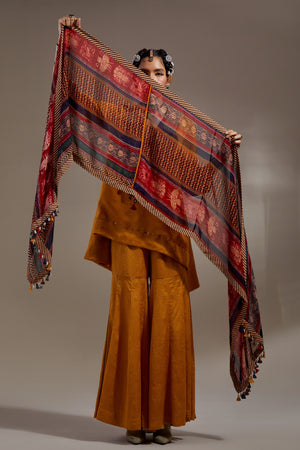 • Tribal motif printed dupatta with border. Length - 101.25" Width - 44"