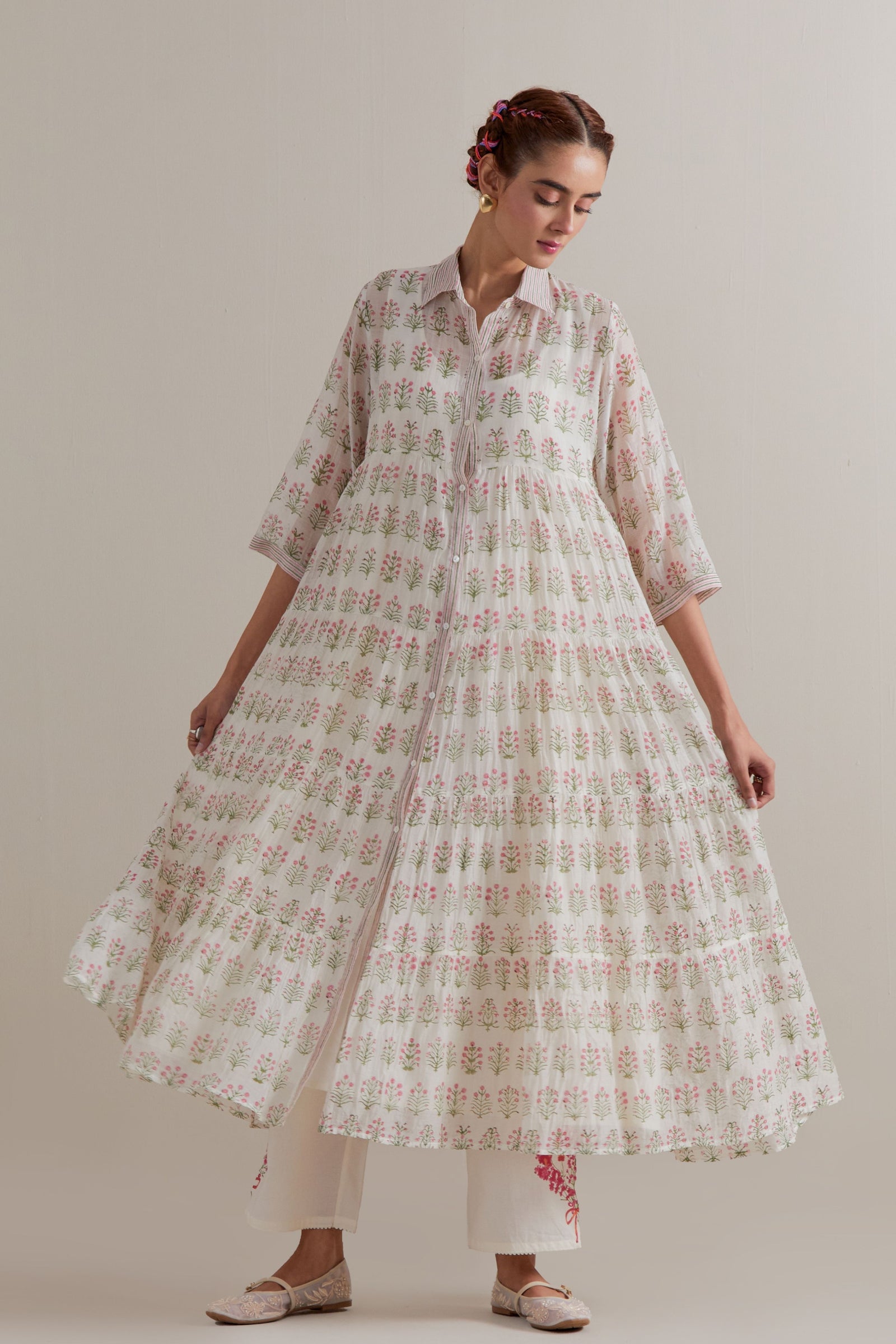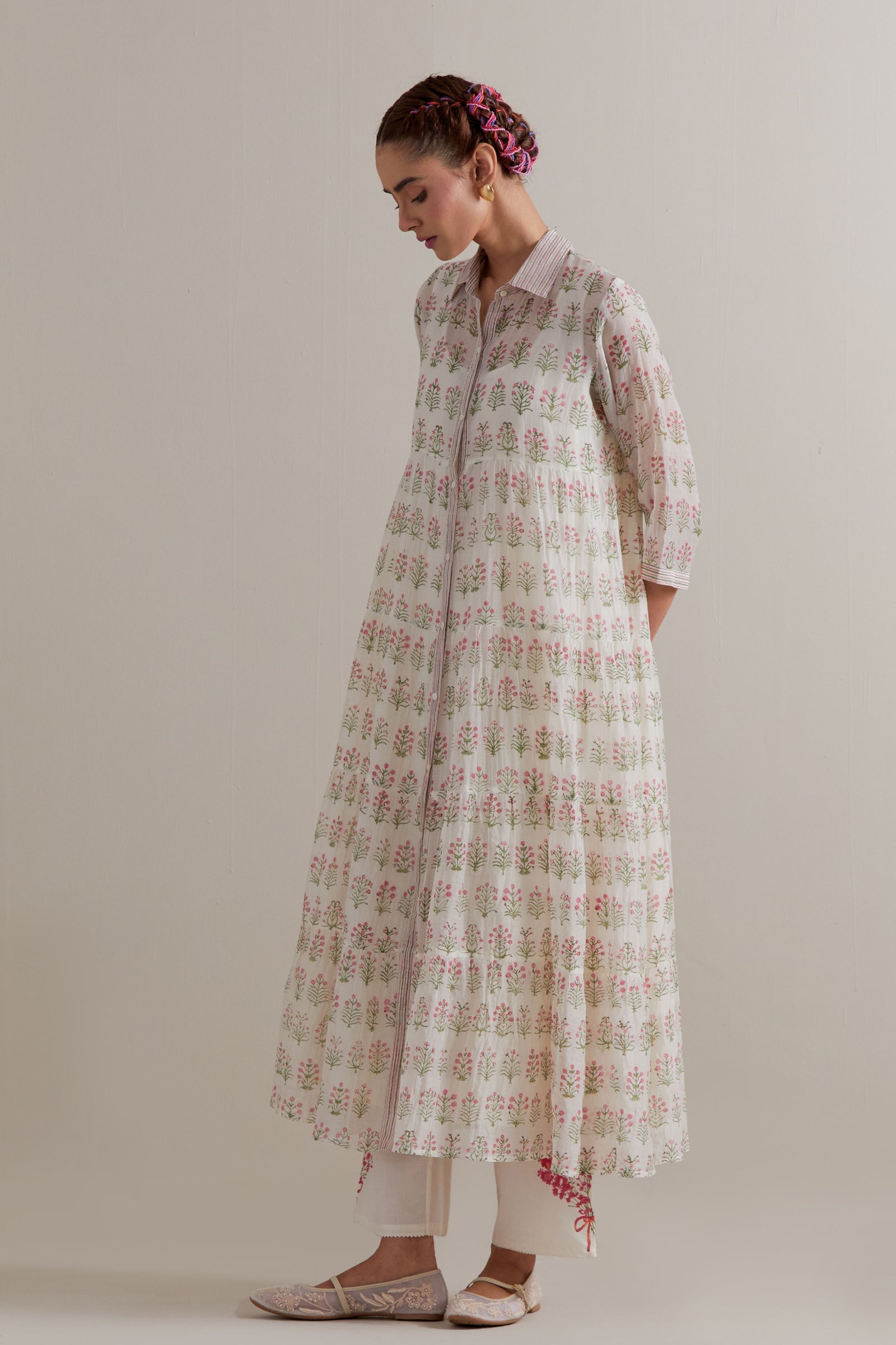 Pink Green Floral Kurta