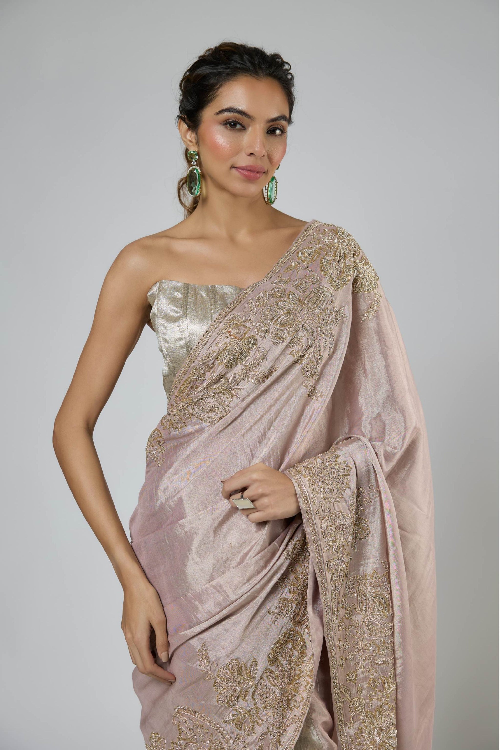 Pink Silver Draped Saree Set
