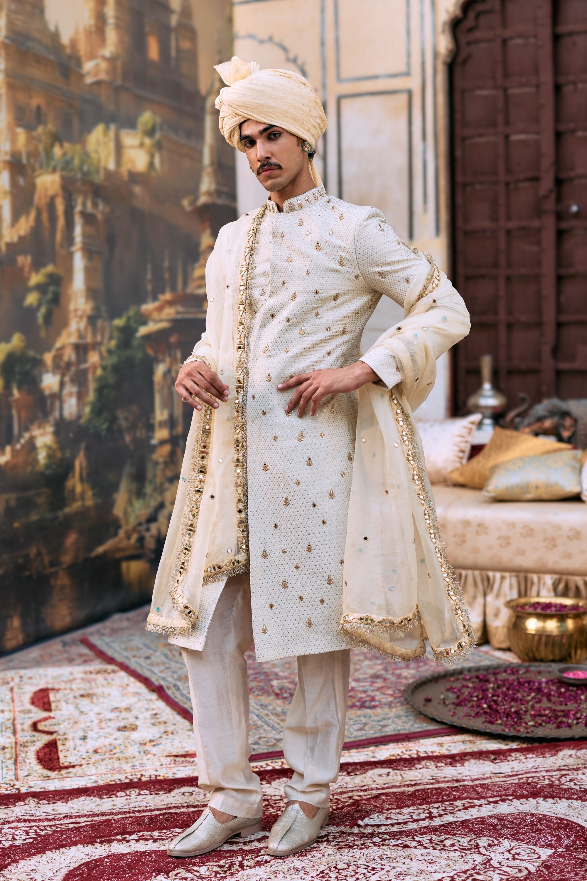 Care: Dry Clean Only. As garments are handmade and handwoven, natural variations in colours and weaves are a characteristic of the textile, and may be found in the finished garments as well.