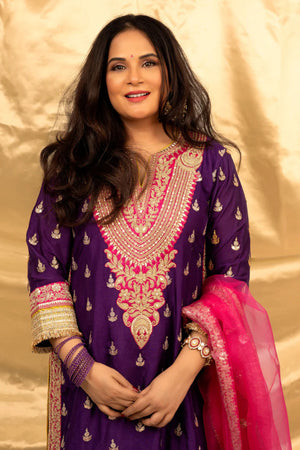 • Fabric: Kurta- Tussar, Sharara- Sami Silk, Dupatta- Organza