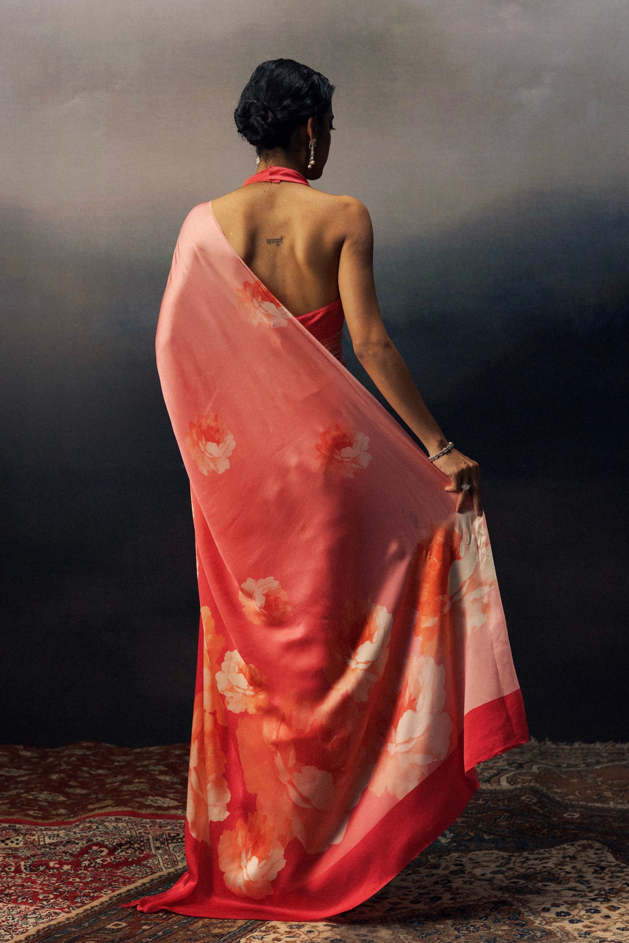 • This saree features a stunning ombré effect, transitioning from a soft, light fuchsia to a rich, deep hue. Beautiful, large pink-shaded florals bloom across the fabric, adding a bold and sophisticated touch to the vibrant gradient. The seamless blend of color and intricate florals creates a perfect balance of modern elegance and timeless beauty.