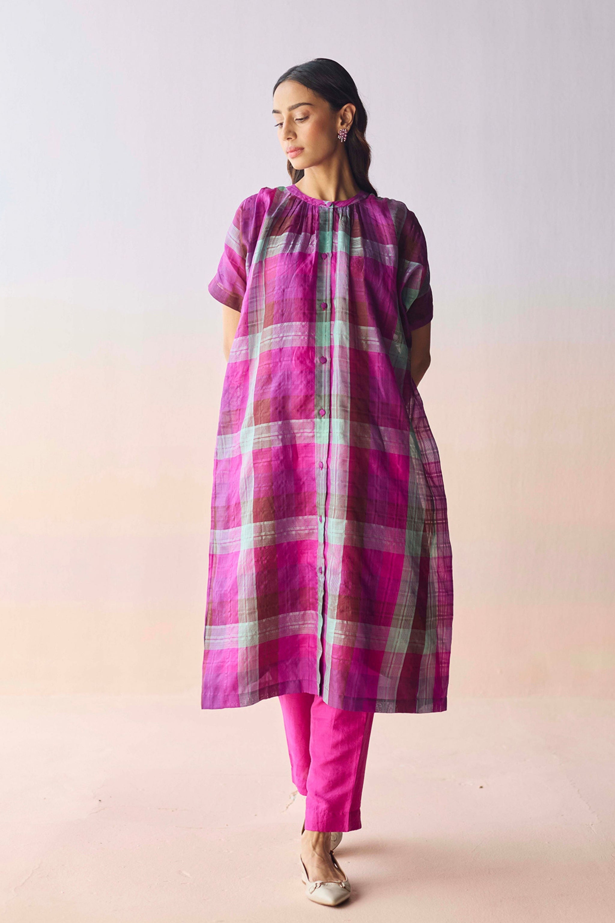 Care: Dry Clean Only. As garments are handmade and handwoven, natural variations in colours and weaves are a characteristic of the textile, and may be found in the finished garments as well.