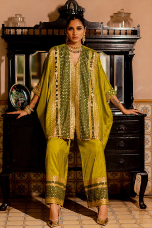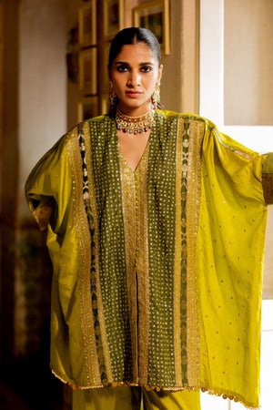 • Saanwariya - lime-olive kaftan with palazzo