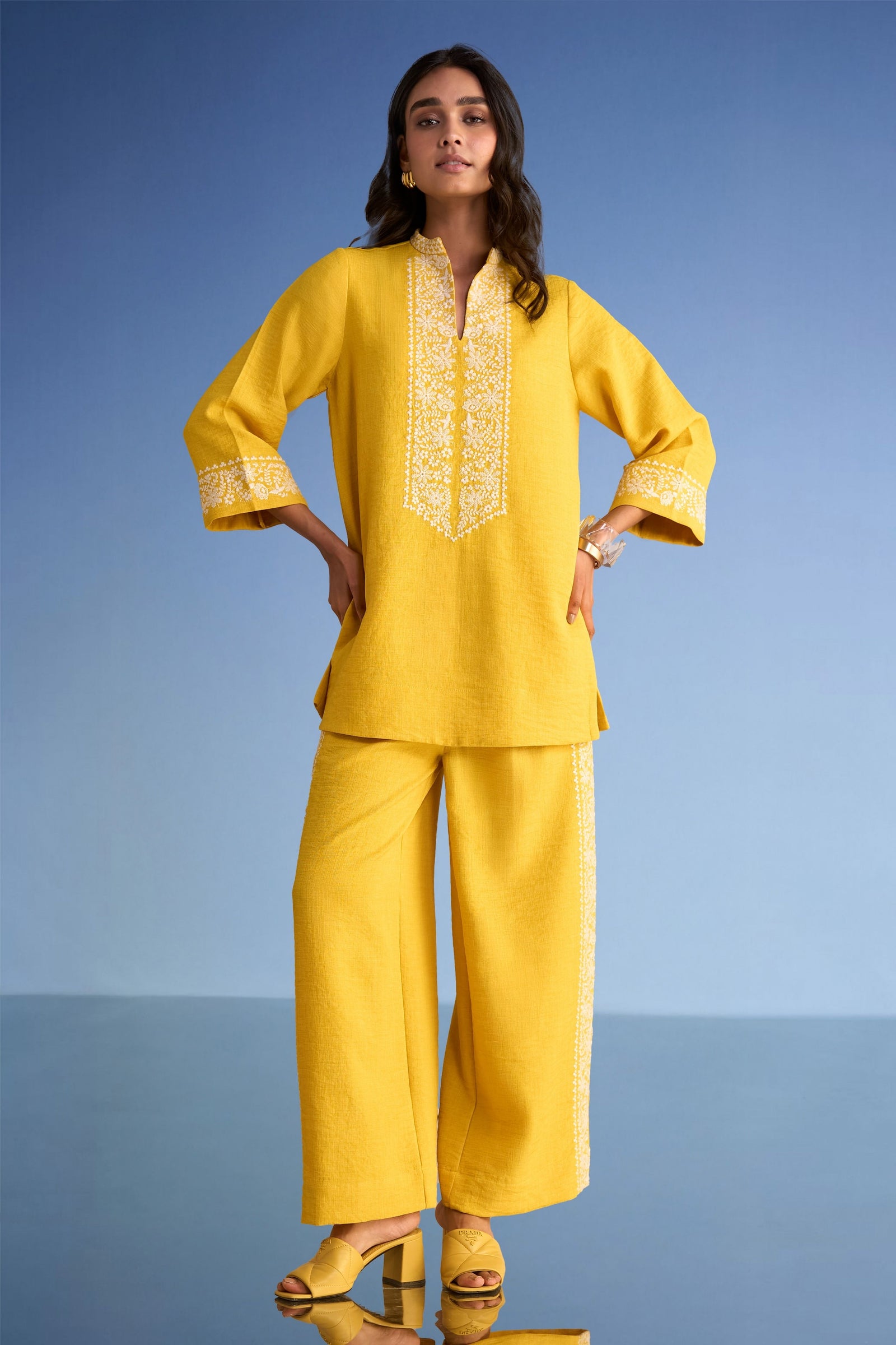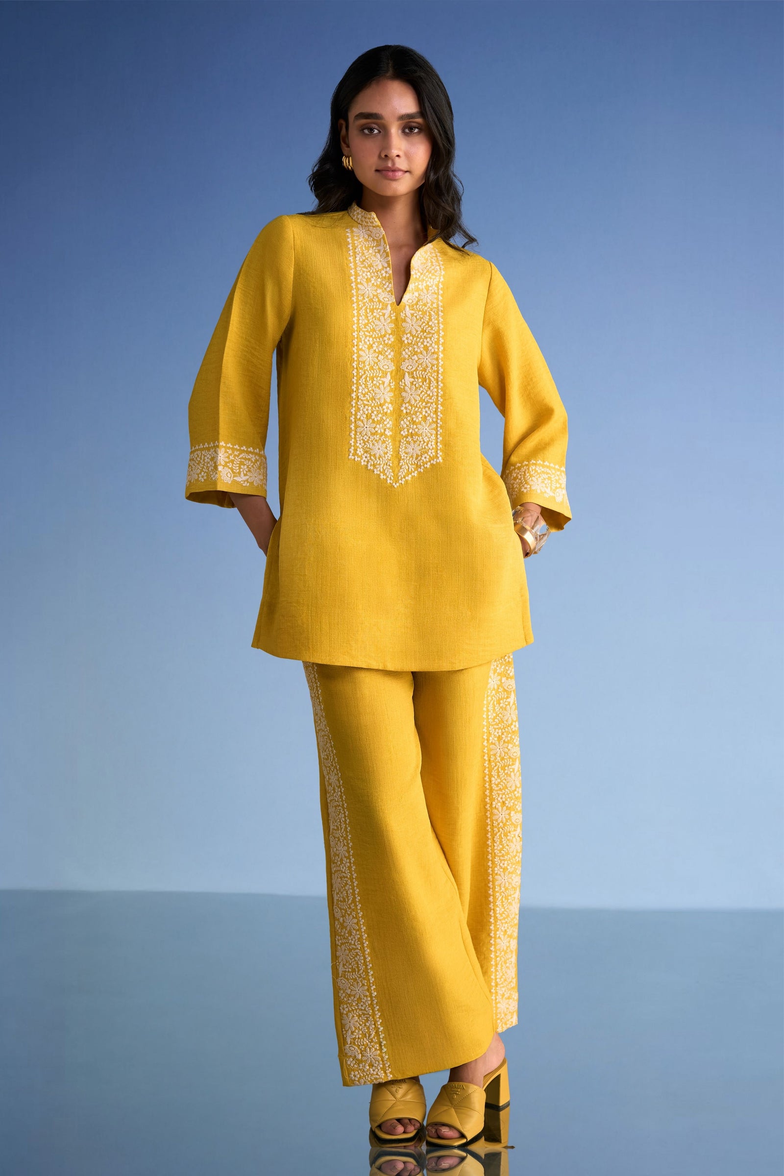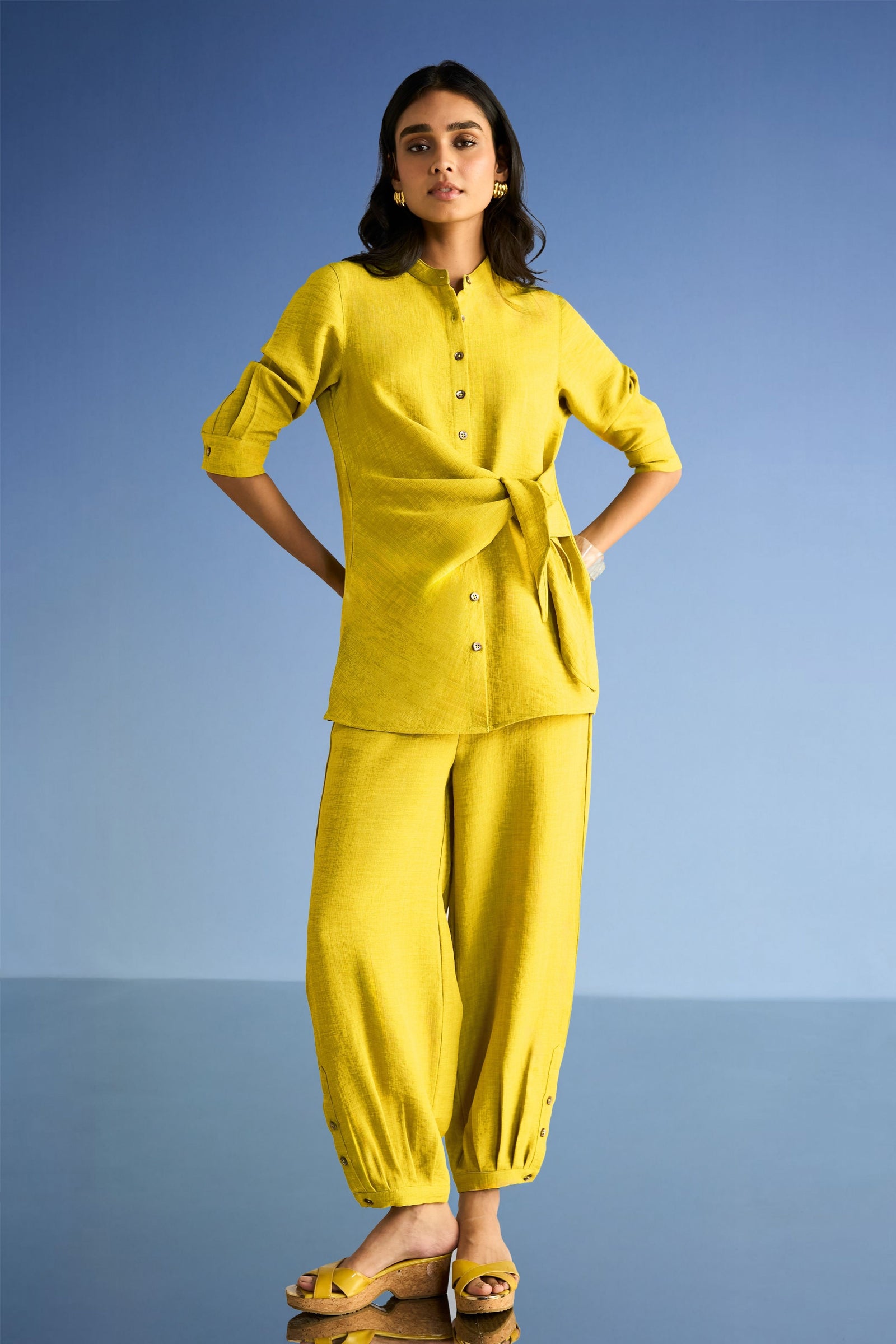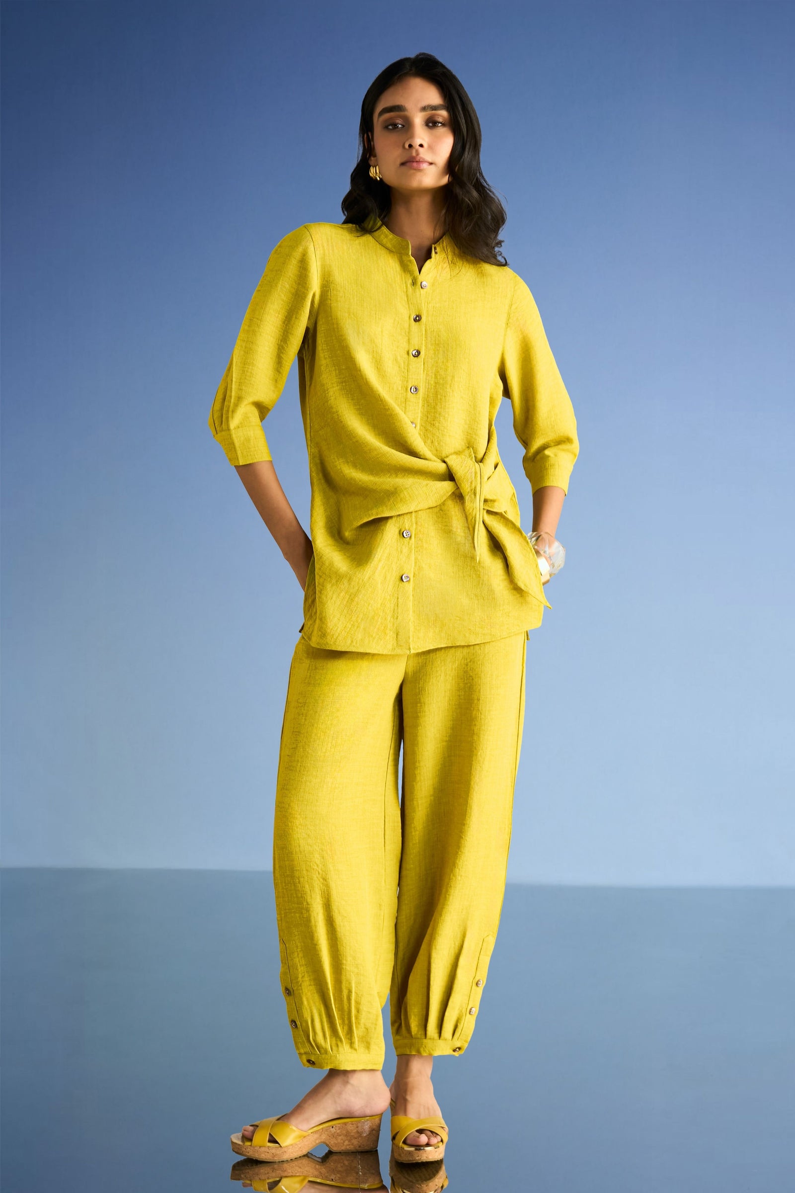 Care: Dry Clean Only. As garments are handmade and handwoven, natural variations in colours and weaves are a characteristic of the textile, and may be found in the finished garments as well.