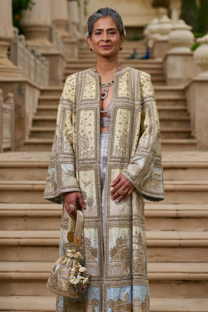 Care: Dry Clean Only. As garments are handmade and handwoven, natural variations in colours and weaves are a characteristic of the textile, and may be found in the finished garments as well.