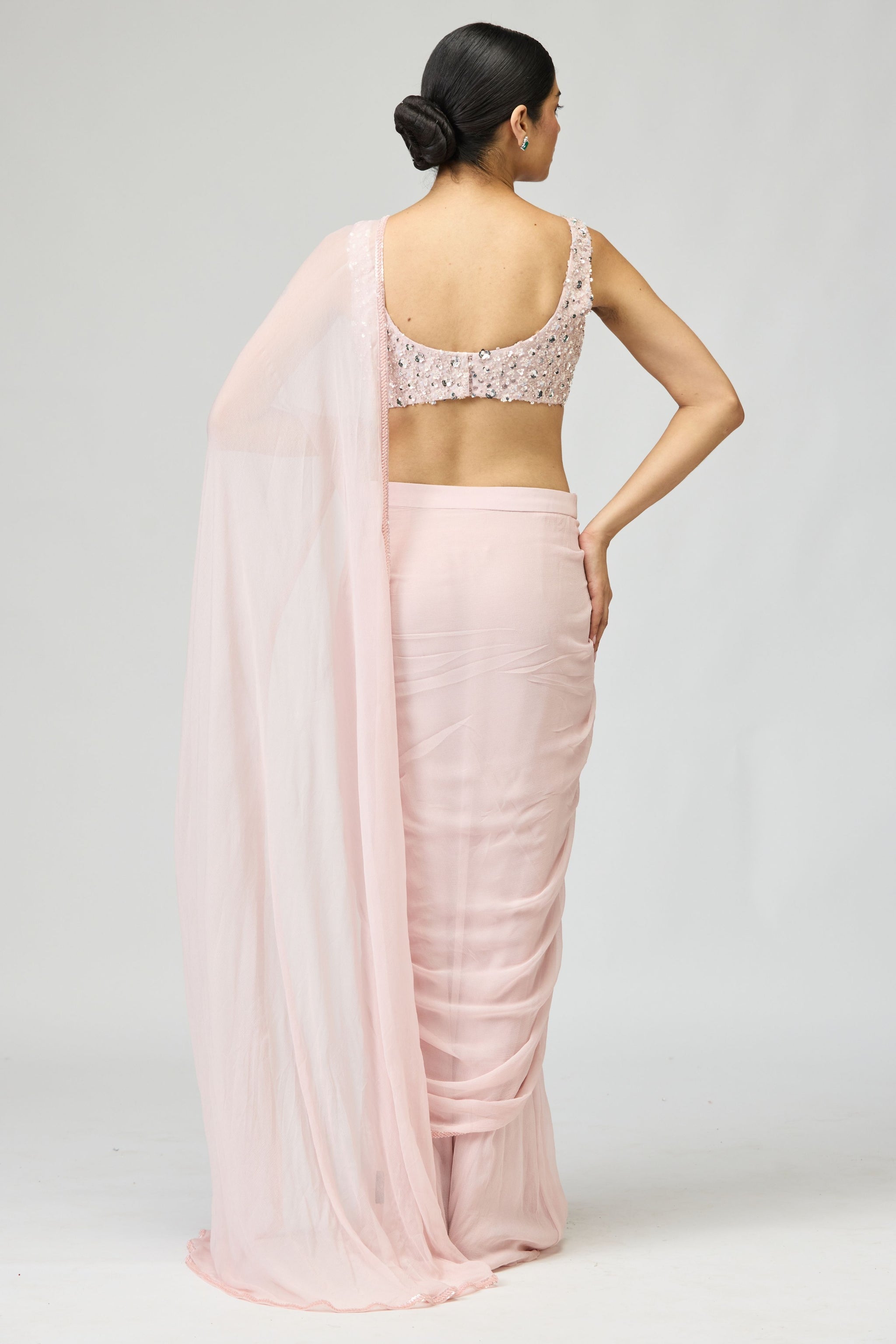 Silk Chiffon Light Pink Saree Set