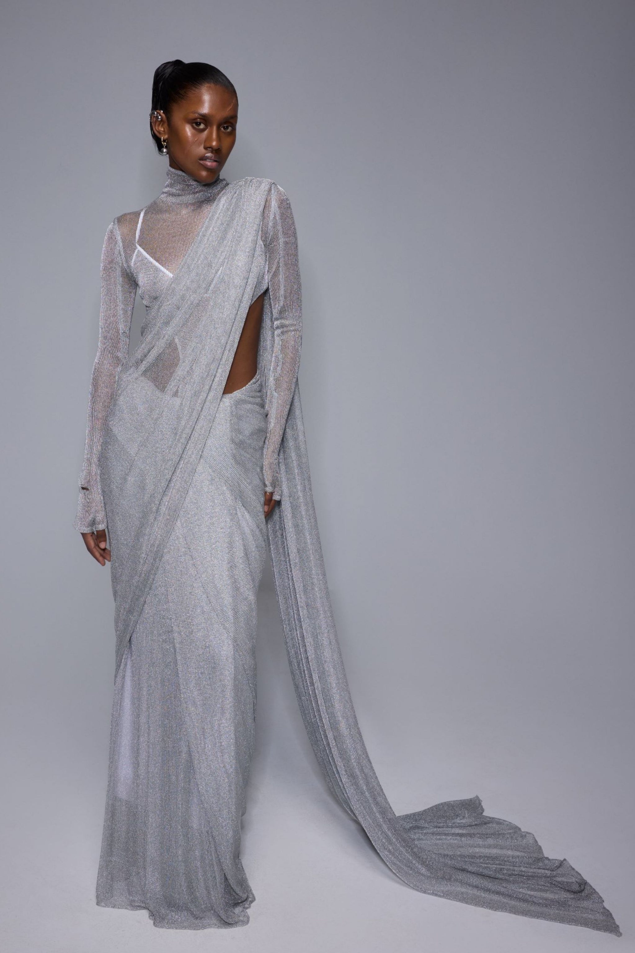 Silver Mesh Saree Set