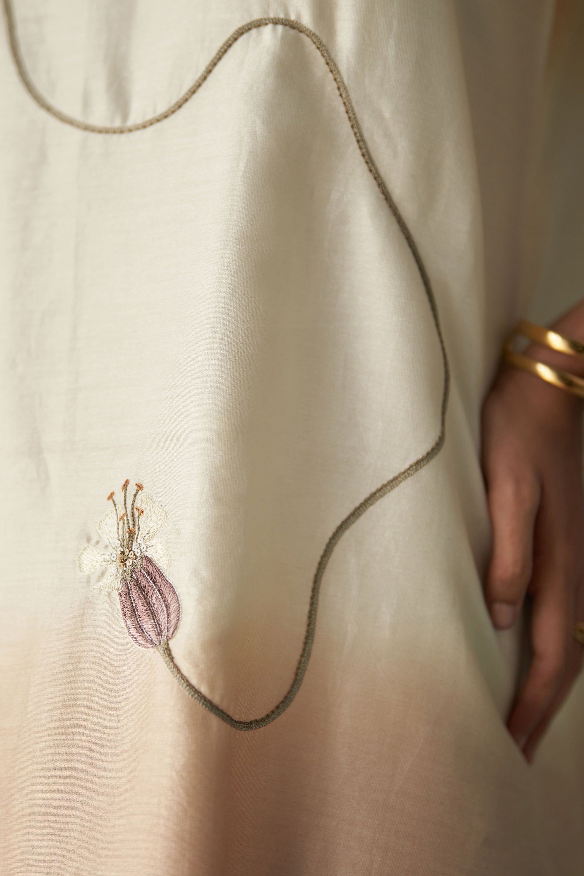 Care: Dry Clean Only. As garments are handmade and handwoven, natural variations in colours and weaves are a characteristic of the textile, and may be found in the finished garments as well.