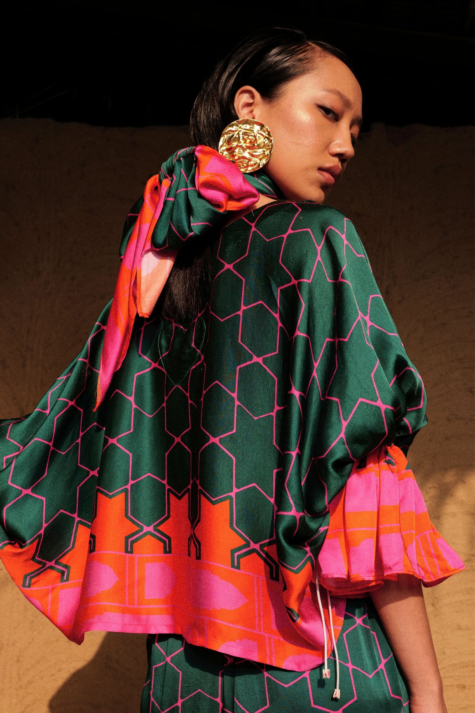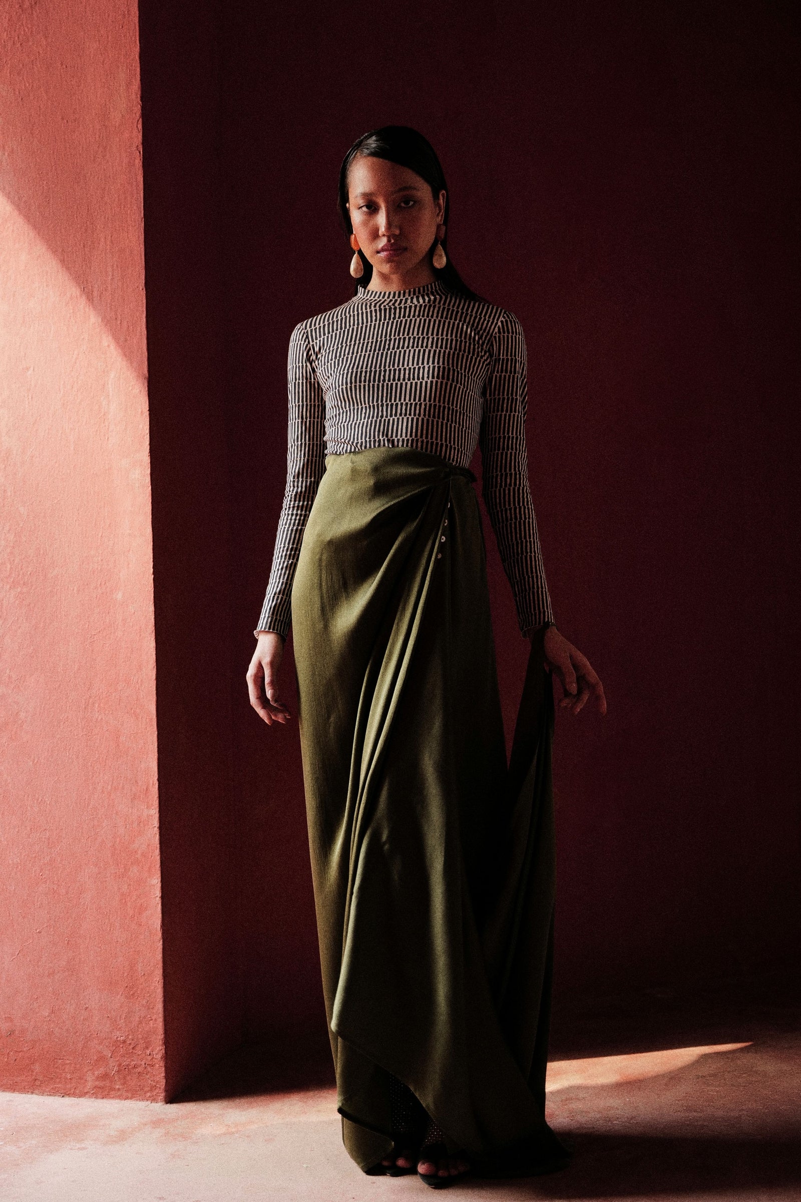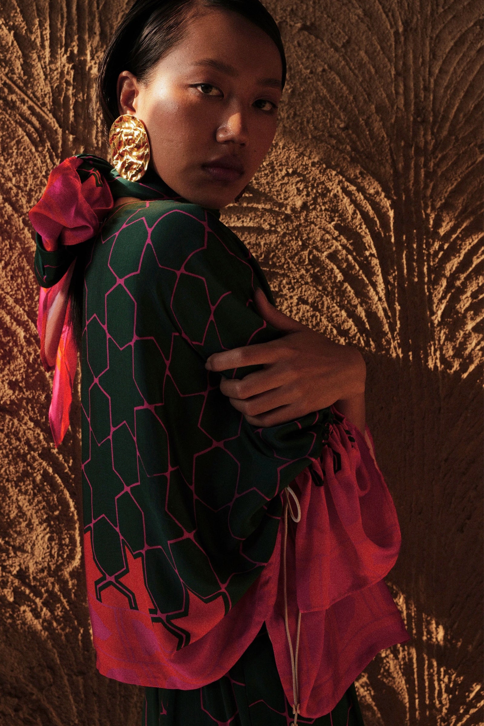 Care: Dry Clean Only. As garments are handmade and handwoven, natural variations in colours and weaves are a characteristic of the textile, and may be found in the finished garments as well.