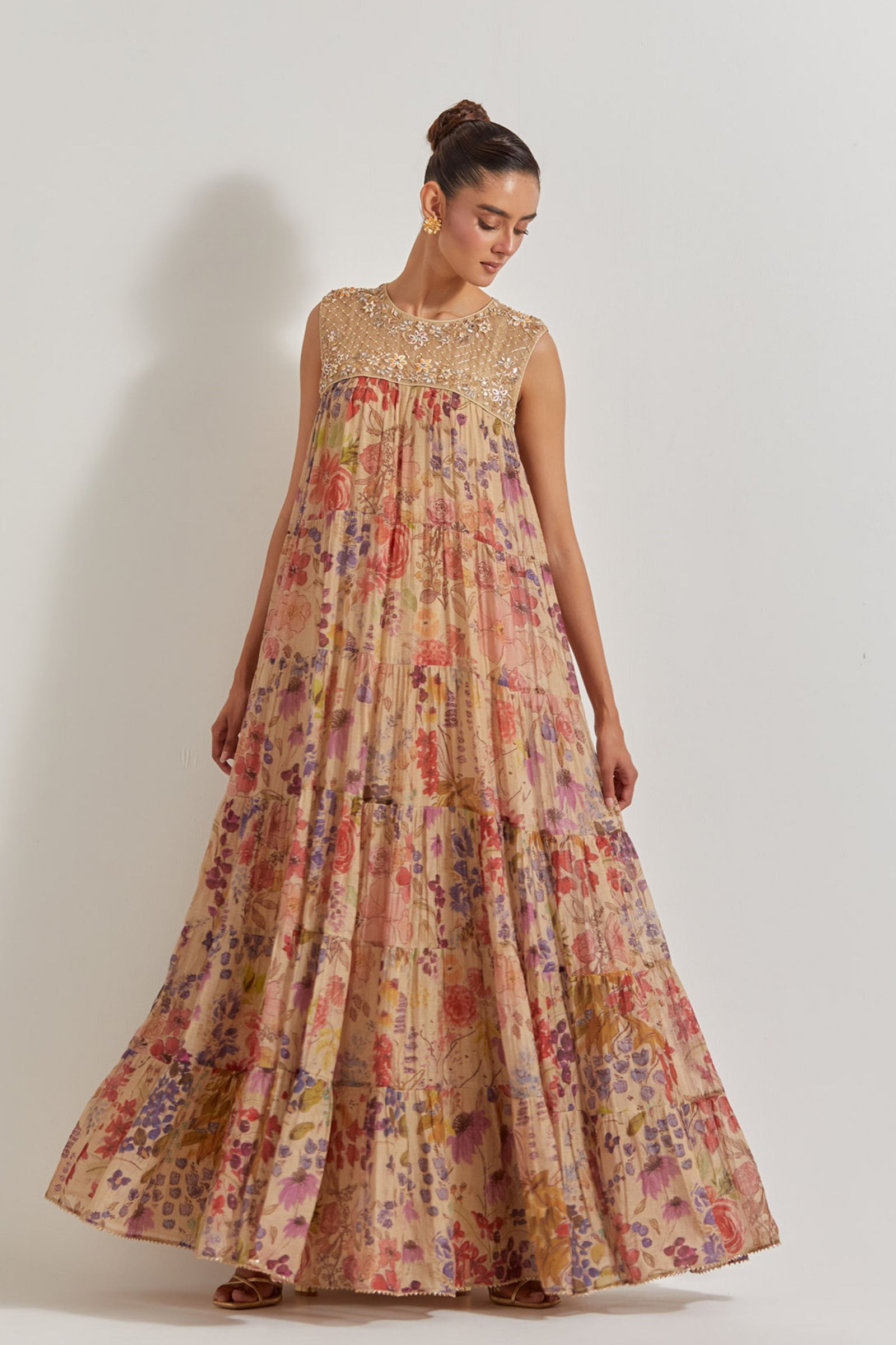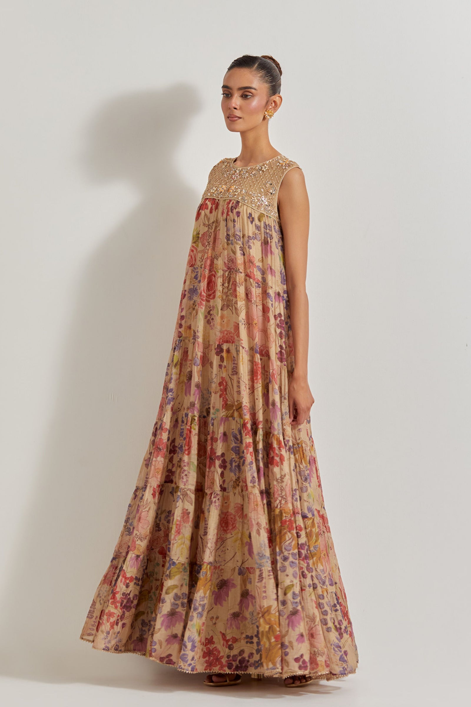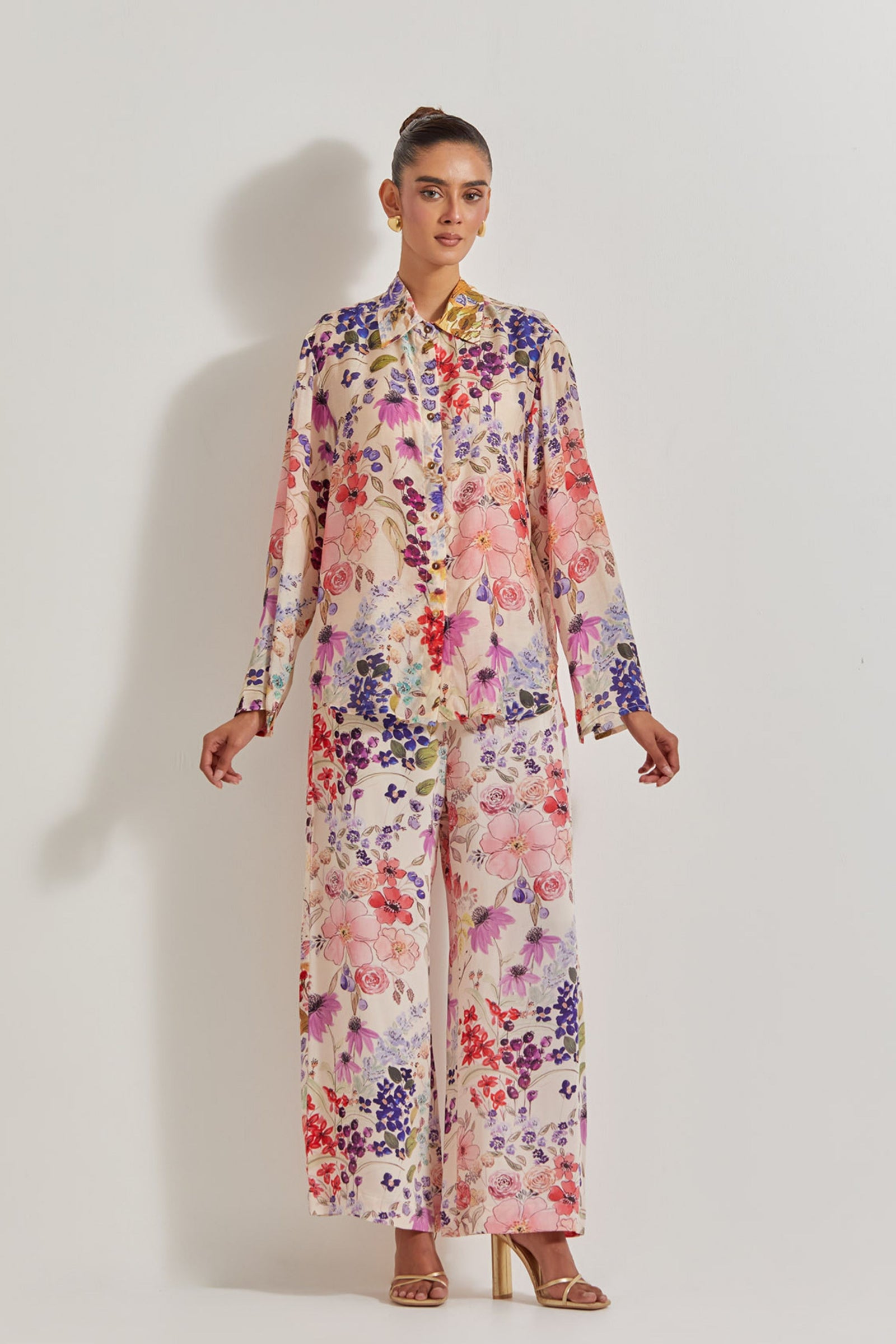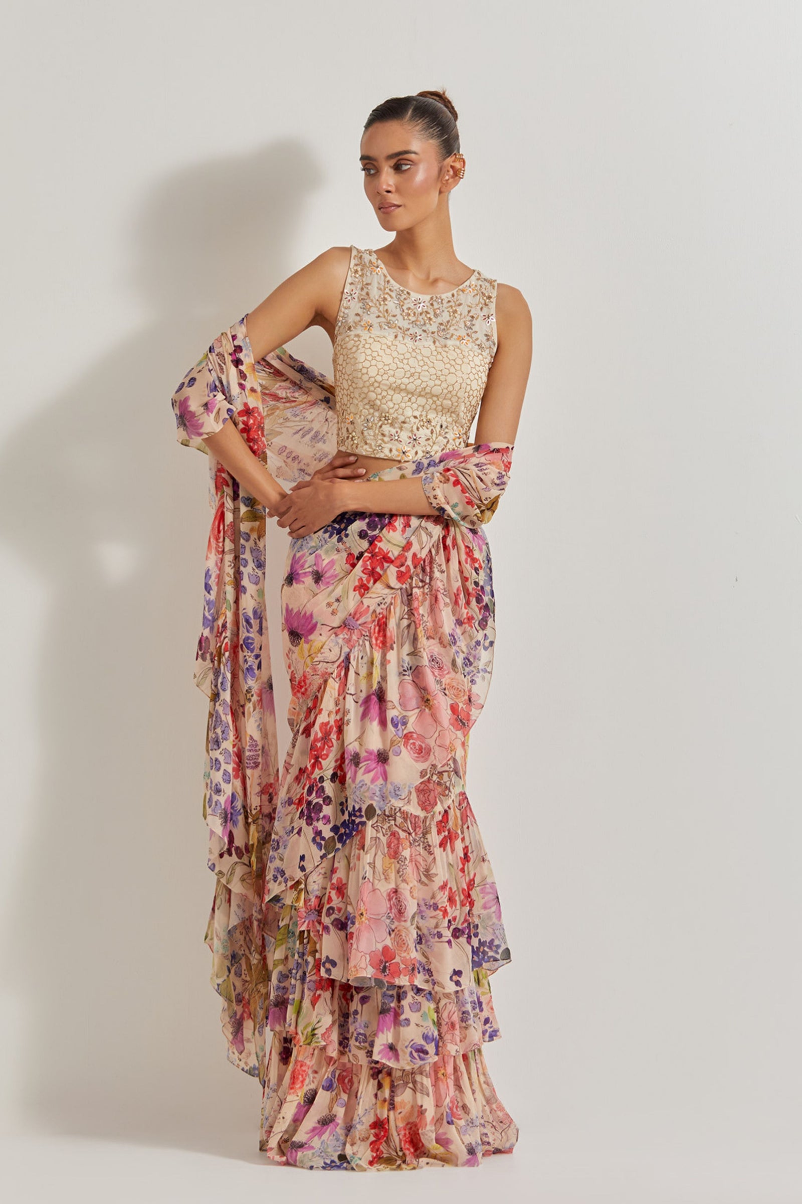 • Blooming burst tissue chanderi sharara set with hand embellished neckline