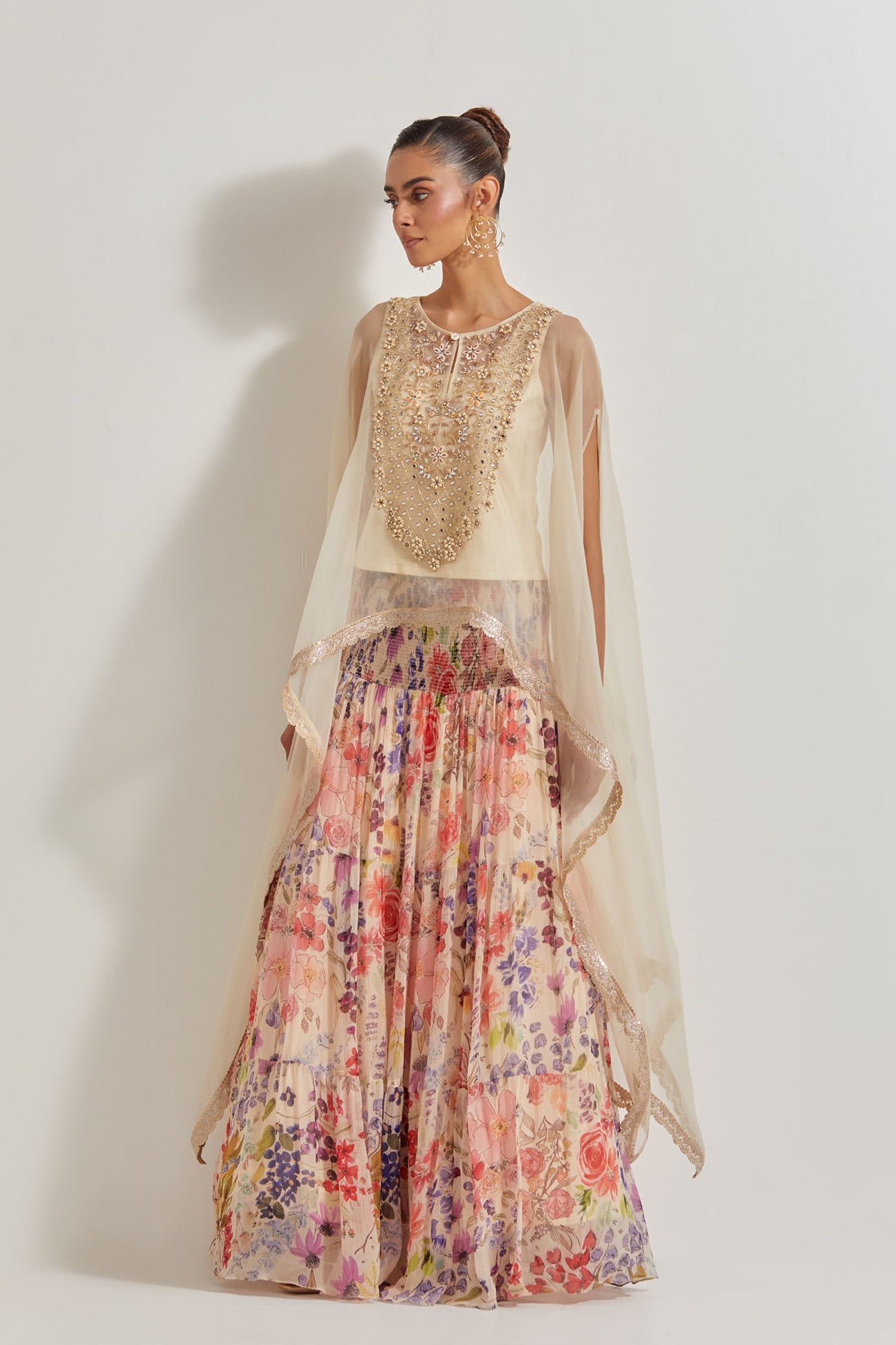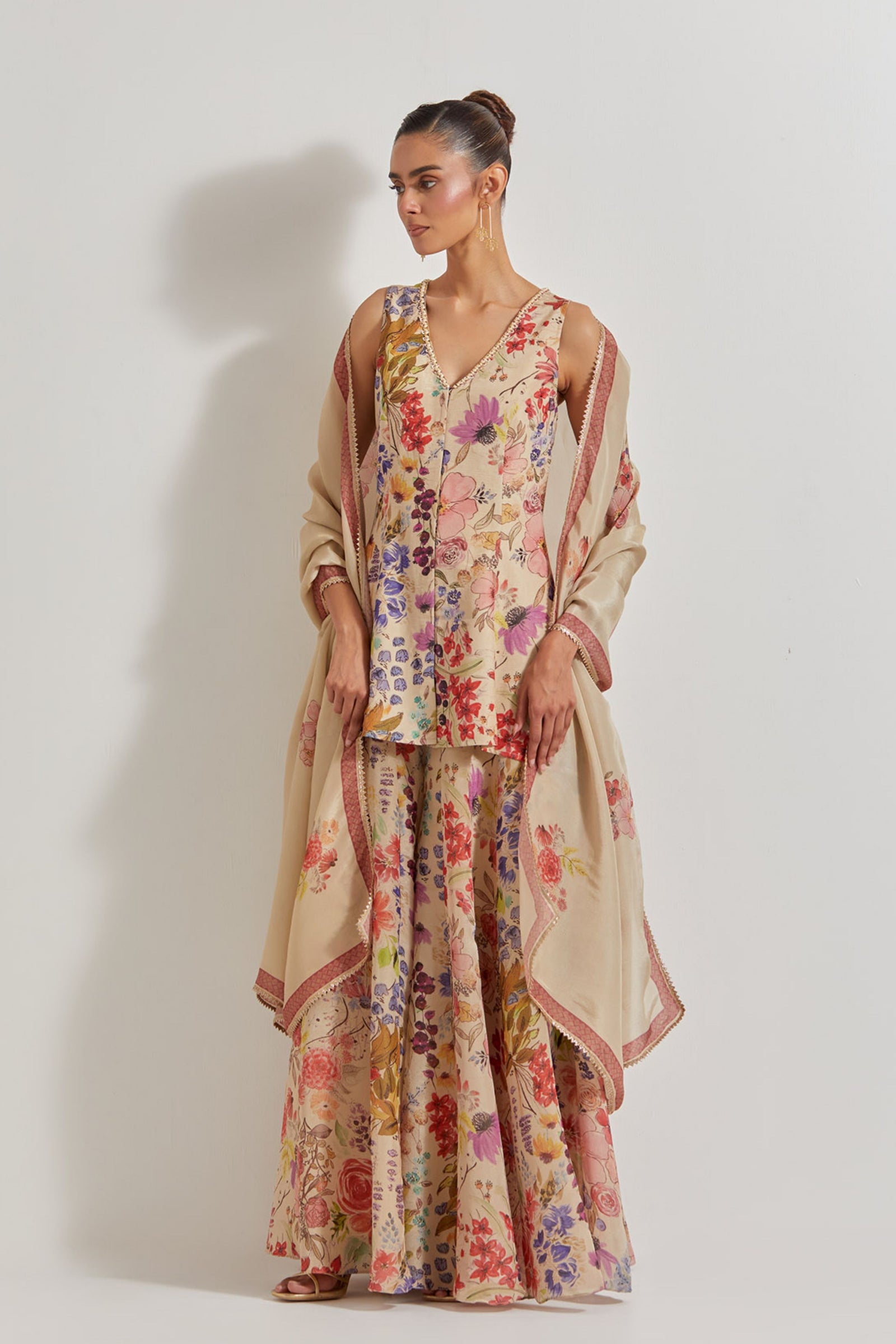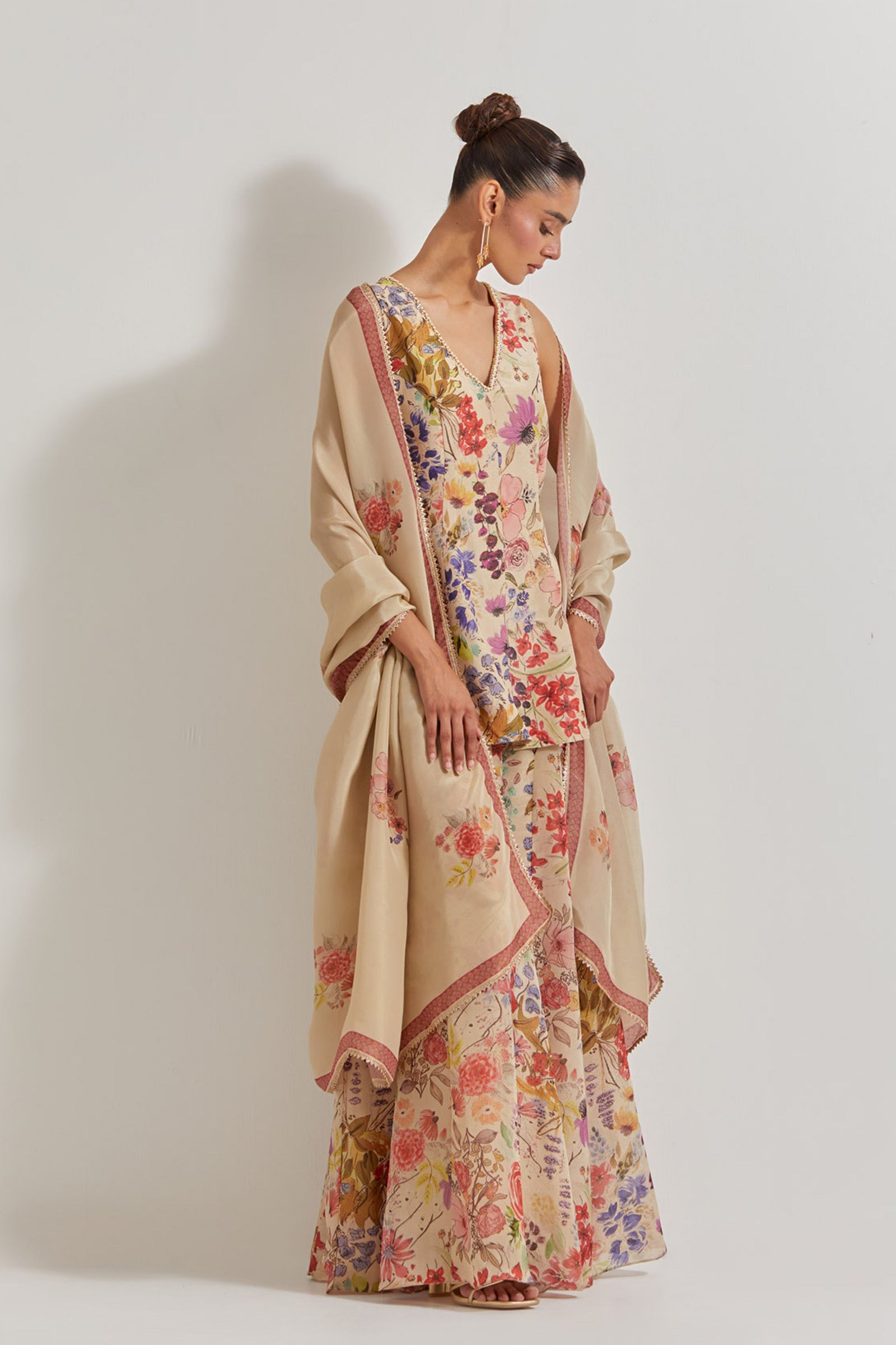 • Components: Kurta, Dupatta, Sharara Pants (3)