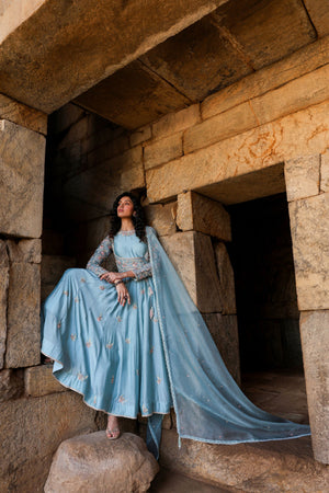 Vaayu Light Blue Heavy Koti Anarkali Set