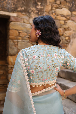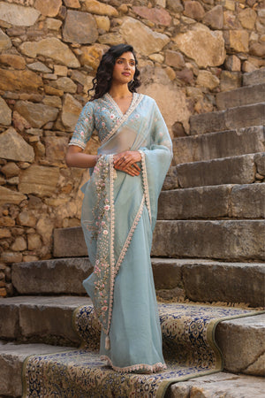 Vaayu Light Blue Phool Patti Saree Set