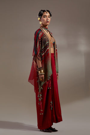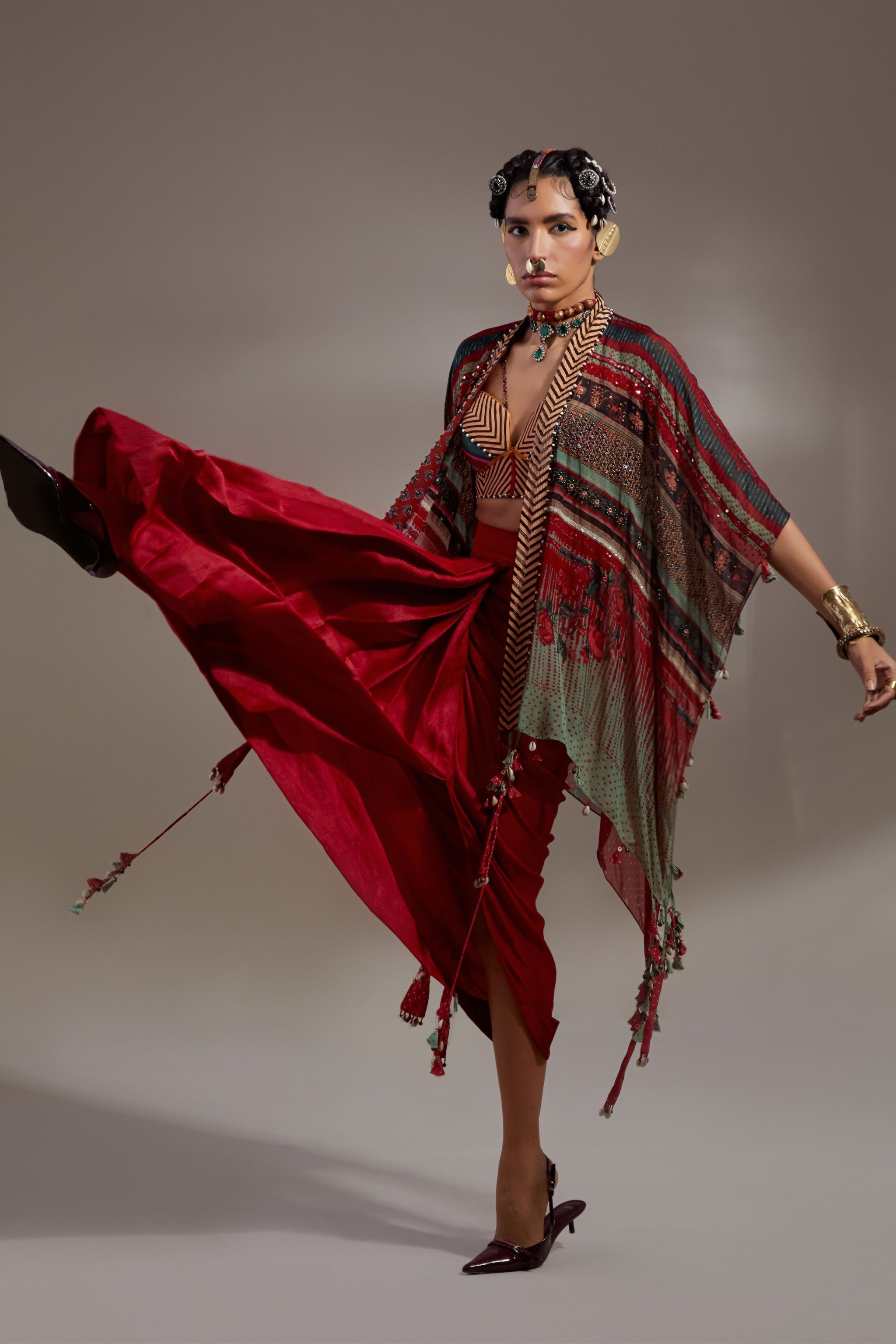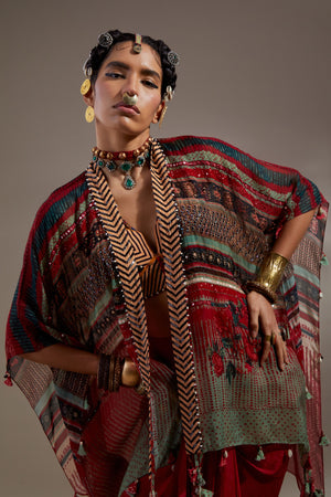• Embroidered and printed jacket with tribal tassel details. Jacket - 32"