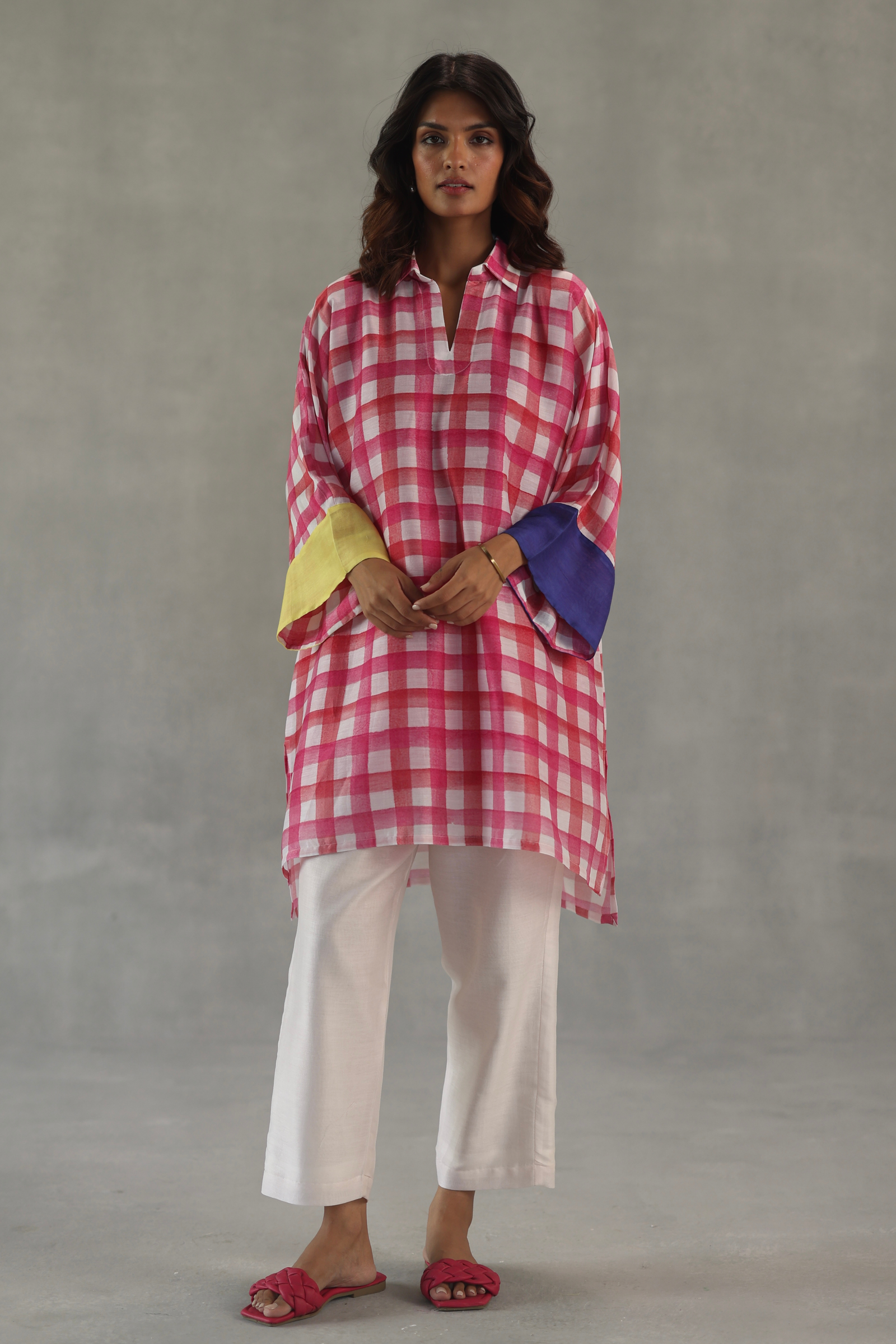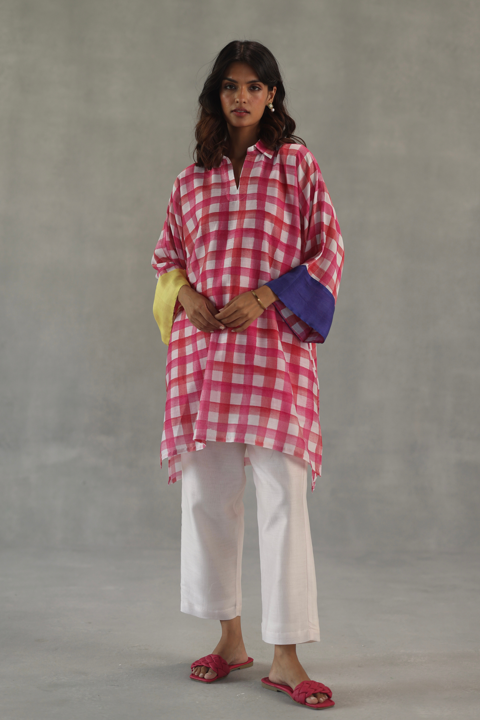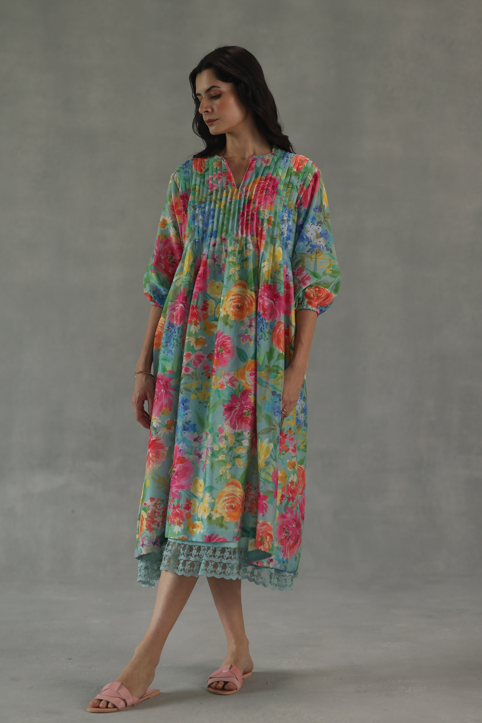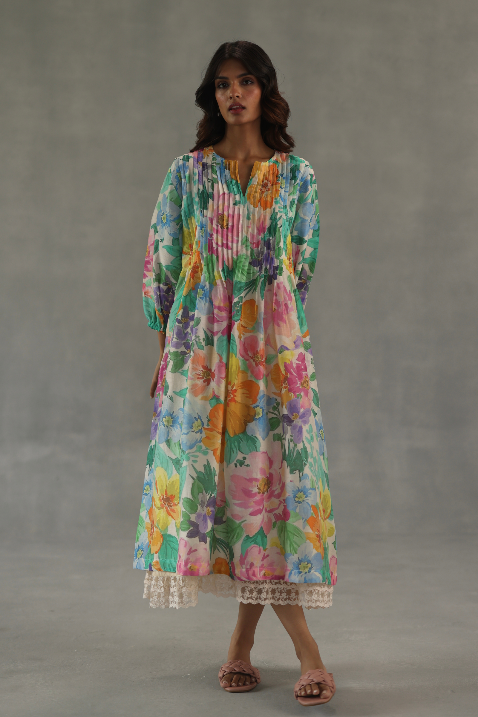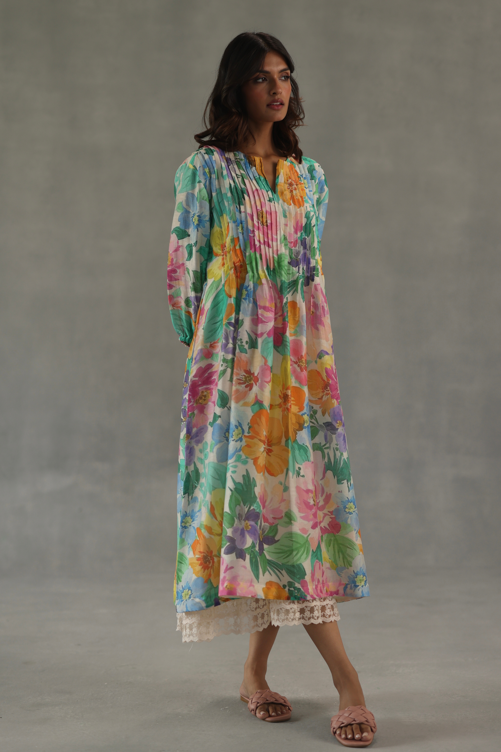 • The Water Lily kurta is a breezy kurta in linen with watercolor bunch of flowers across the sweep. The kurta is an a-line silhouette and opens up in pleats along with the roza signature buttons to add a colourful pop. Pair with the water lily pants for that favourite outfit in your closet.