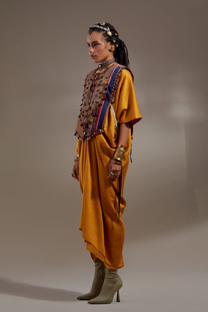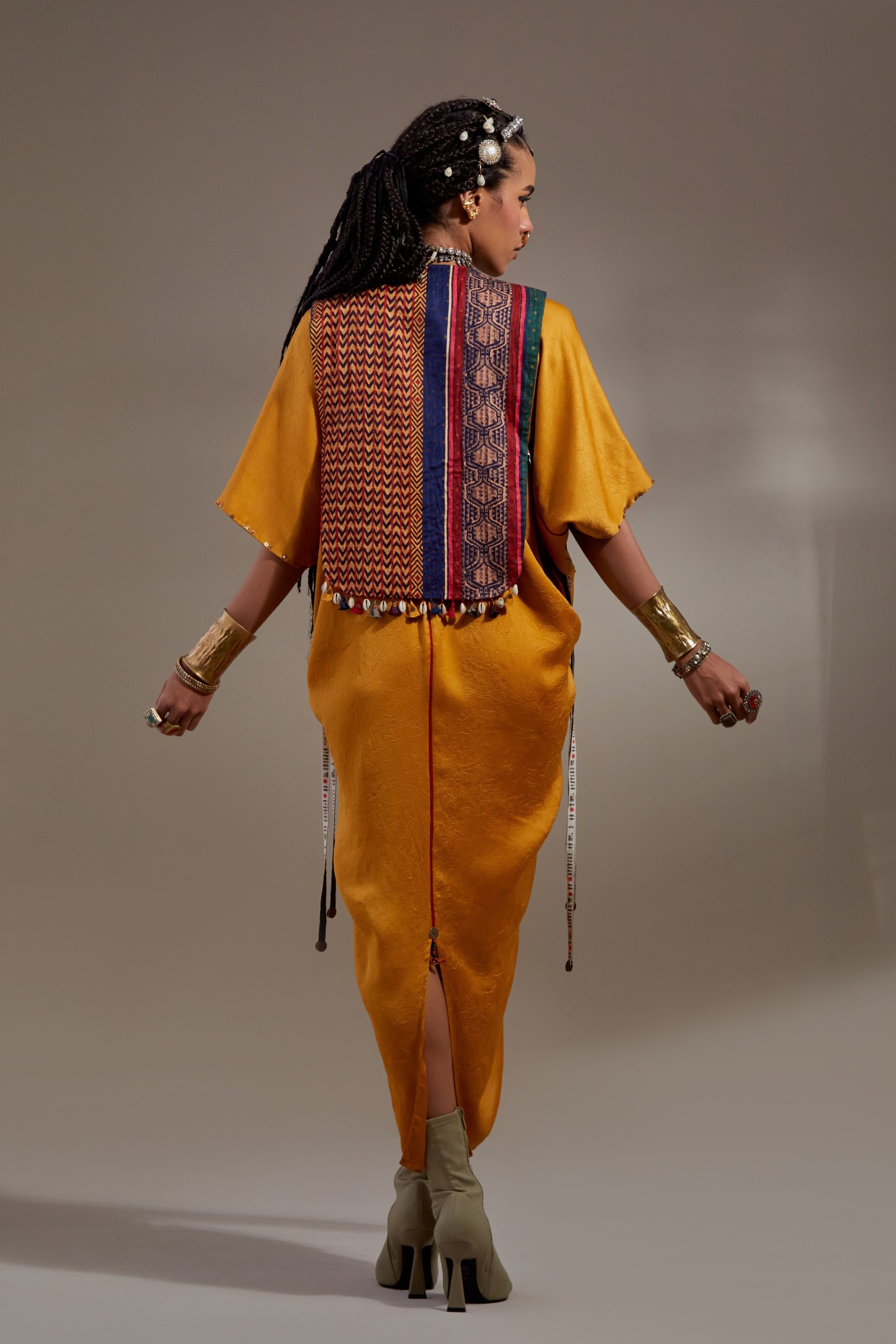 • Embroidered gilet with tribal tassel details. Length- front - 20" back - 21.5''